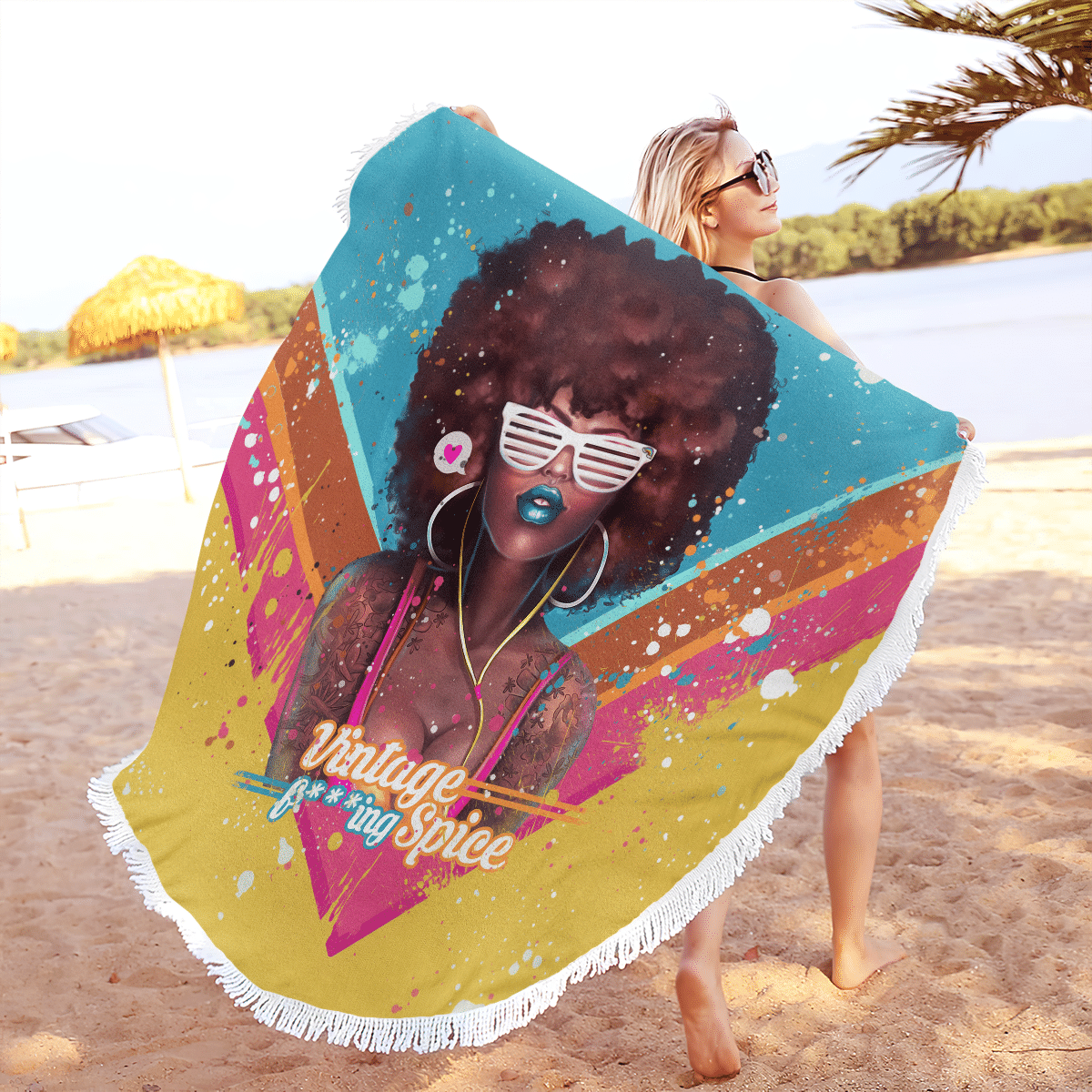 Beach Towel Black Girl Vintage Art All Over Print Beach Towel For Afro Girl