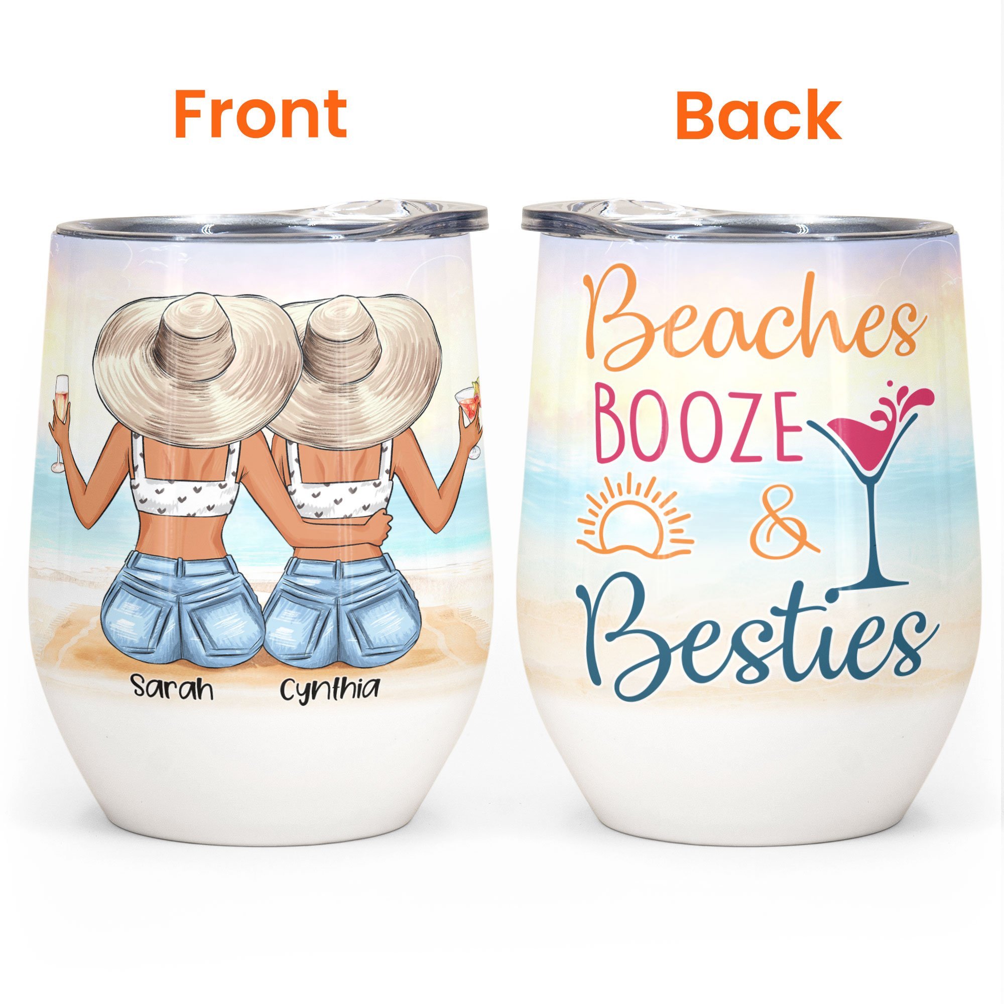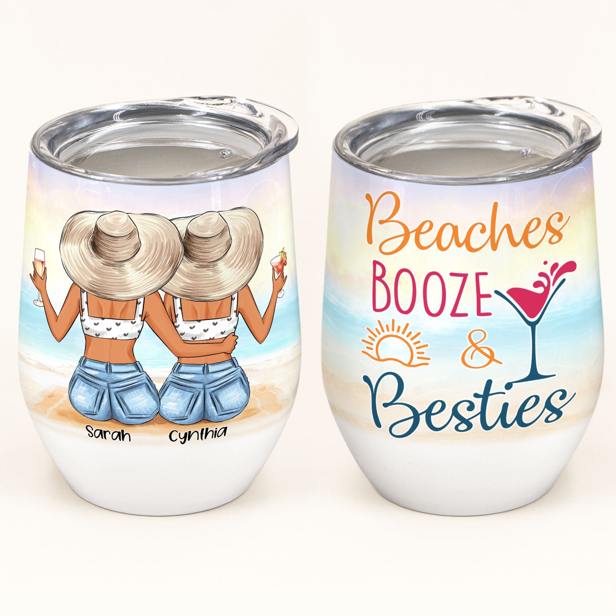 Beaches Booze & Besties – Personalized Wine Tumbler – Gift For Besties Beach Friends