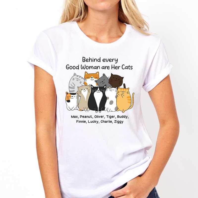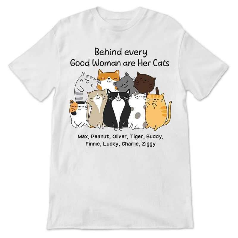 Behind Every Good Woman Are Her Cats Personalized Shirt