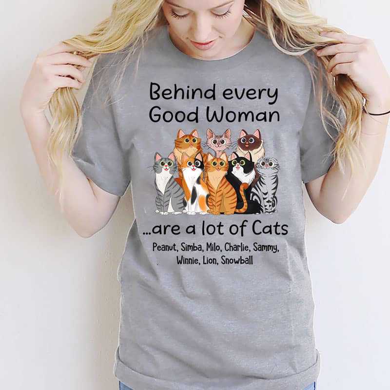 Behind Good Woman Are Cats Sitting Cartoon Cat Personalized Shirt