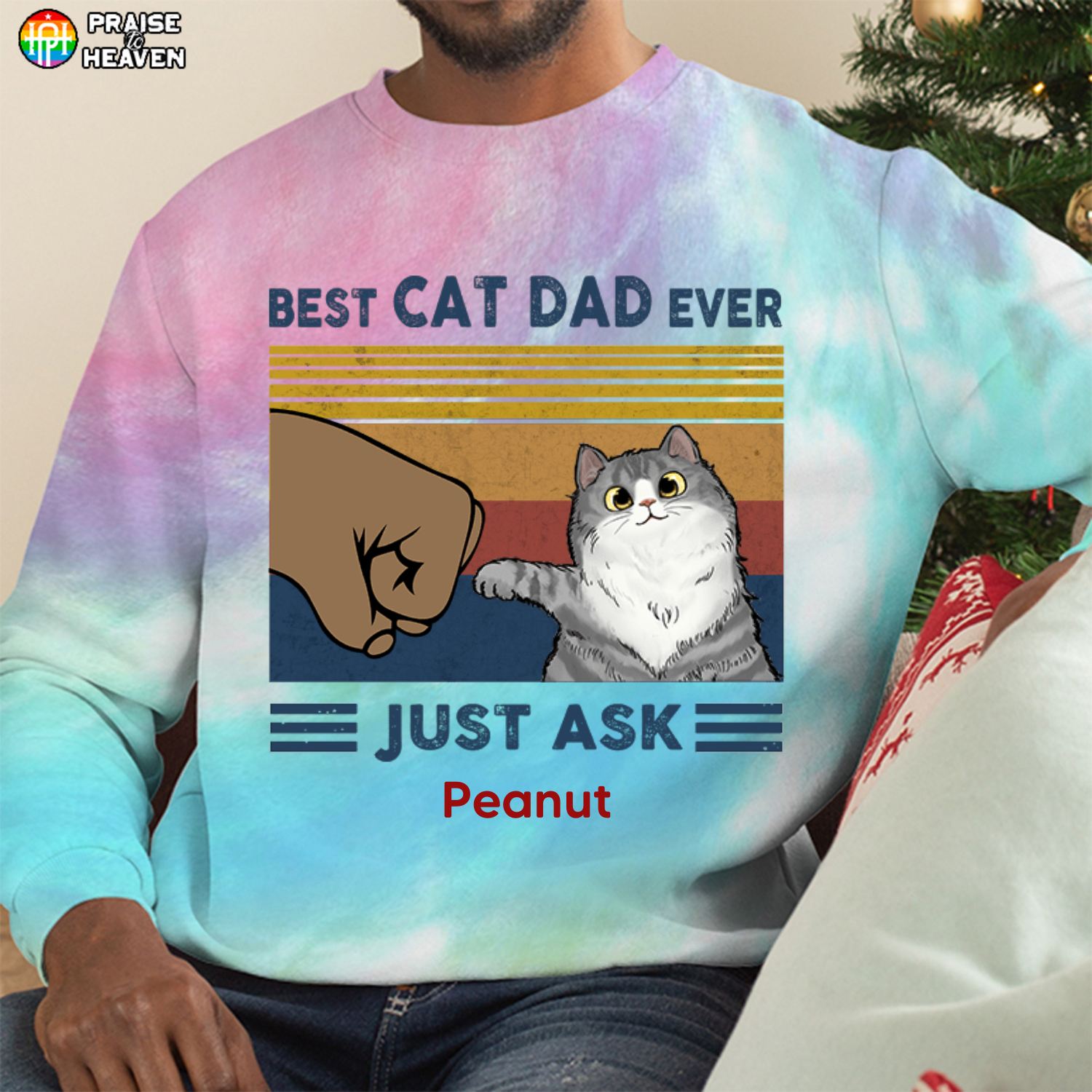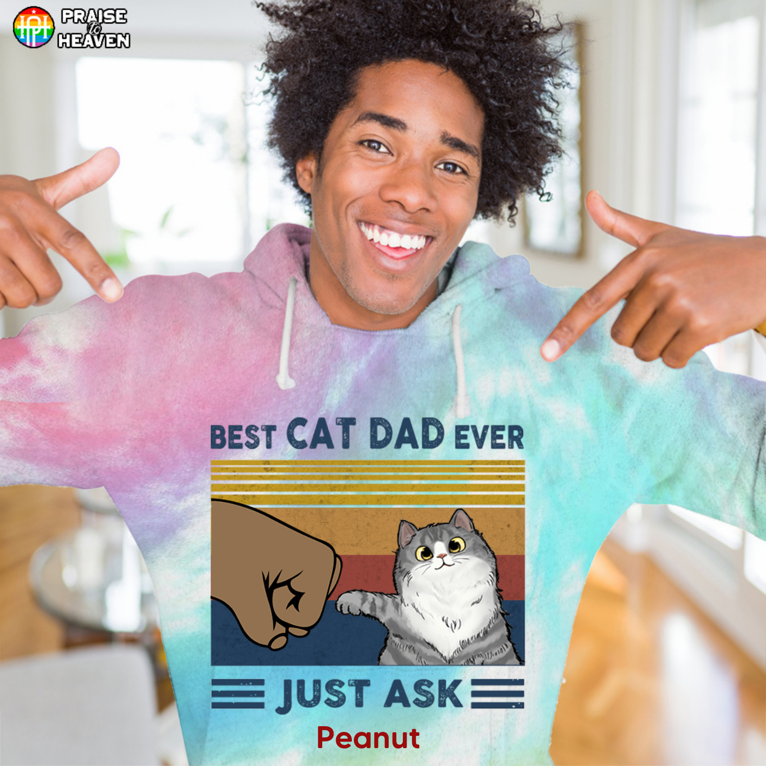 Best Cat Dad Fluffy Cat Personalized Tie Dye Shirt Sweatshirt Hoodie Ap435