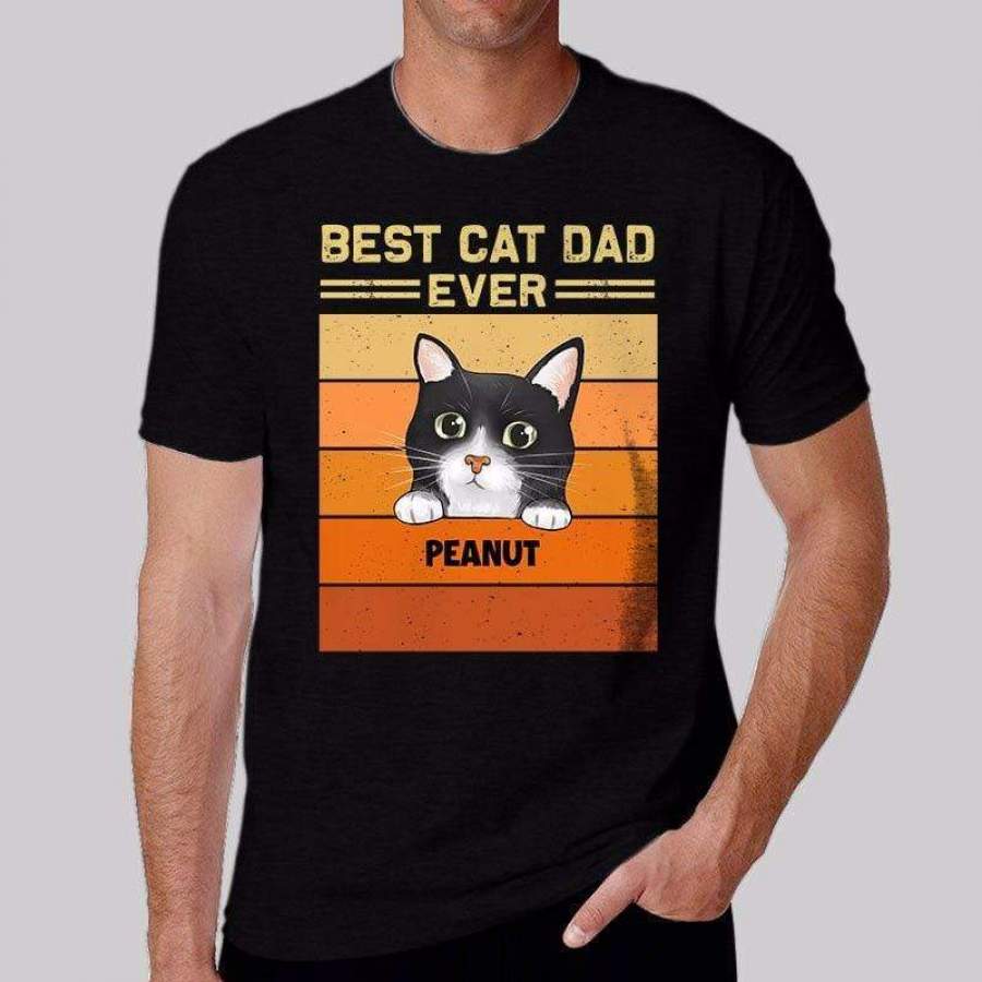Best Cat Dad Mom Peeking Retro Personalized Shirt