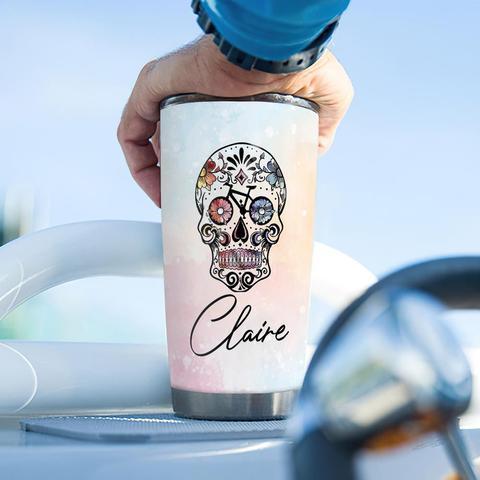 Bicycle Sugar Skull Personalized Stainless Steel Tumbler, Personalized Tumblers, Tumbler Cups, Custom Tumblers