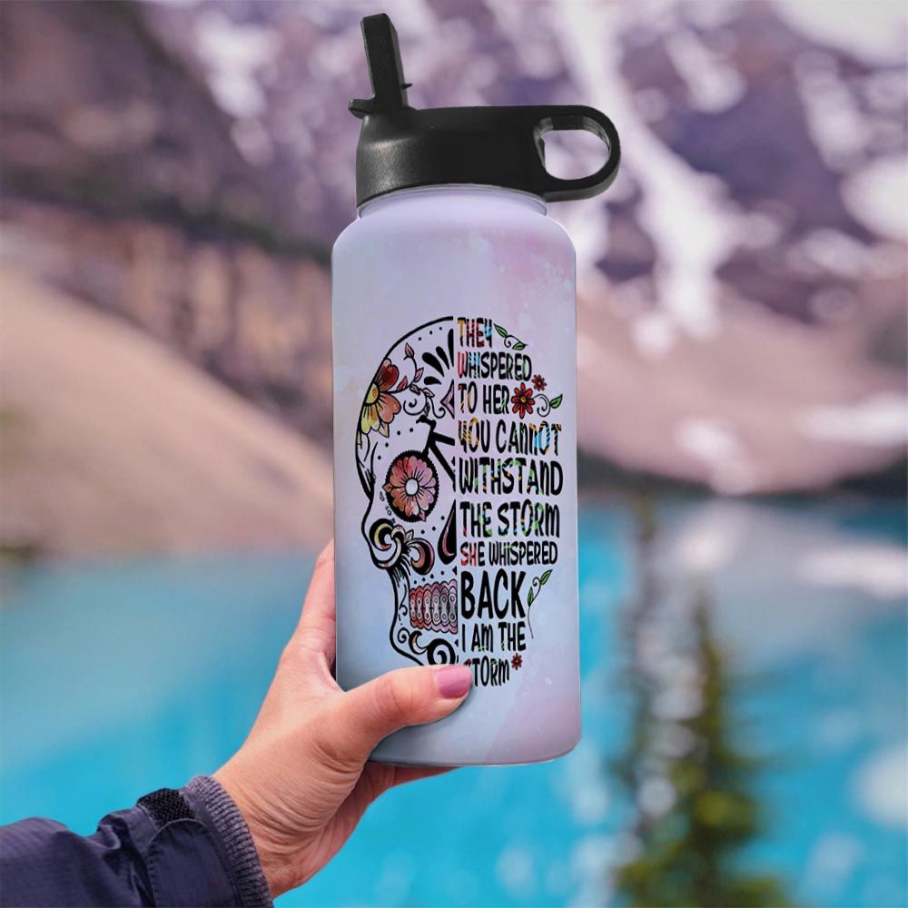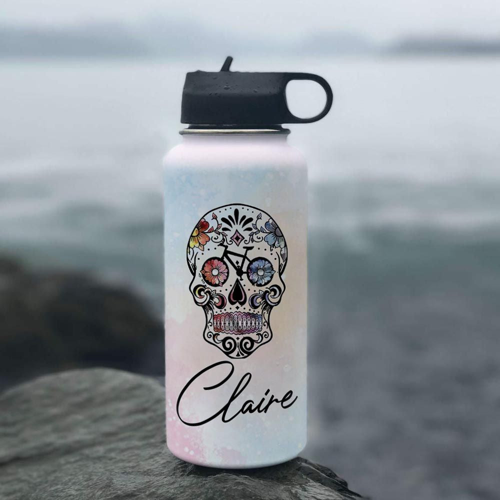 Bicycle Sugar Skull Personalized Tha2710016 Stainless Steel Bottle With Straw Lid