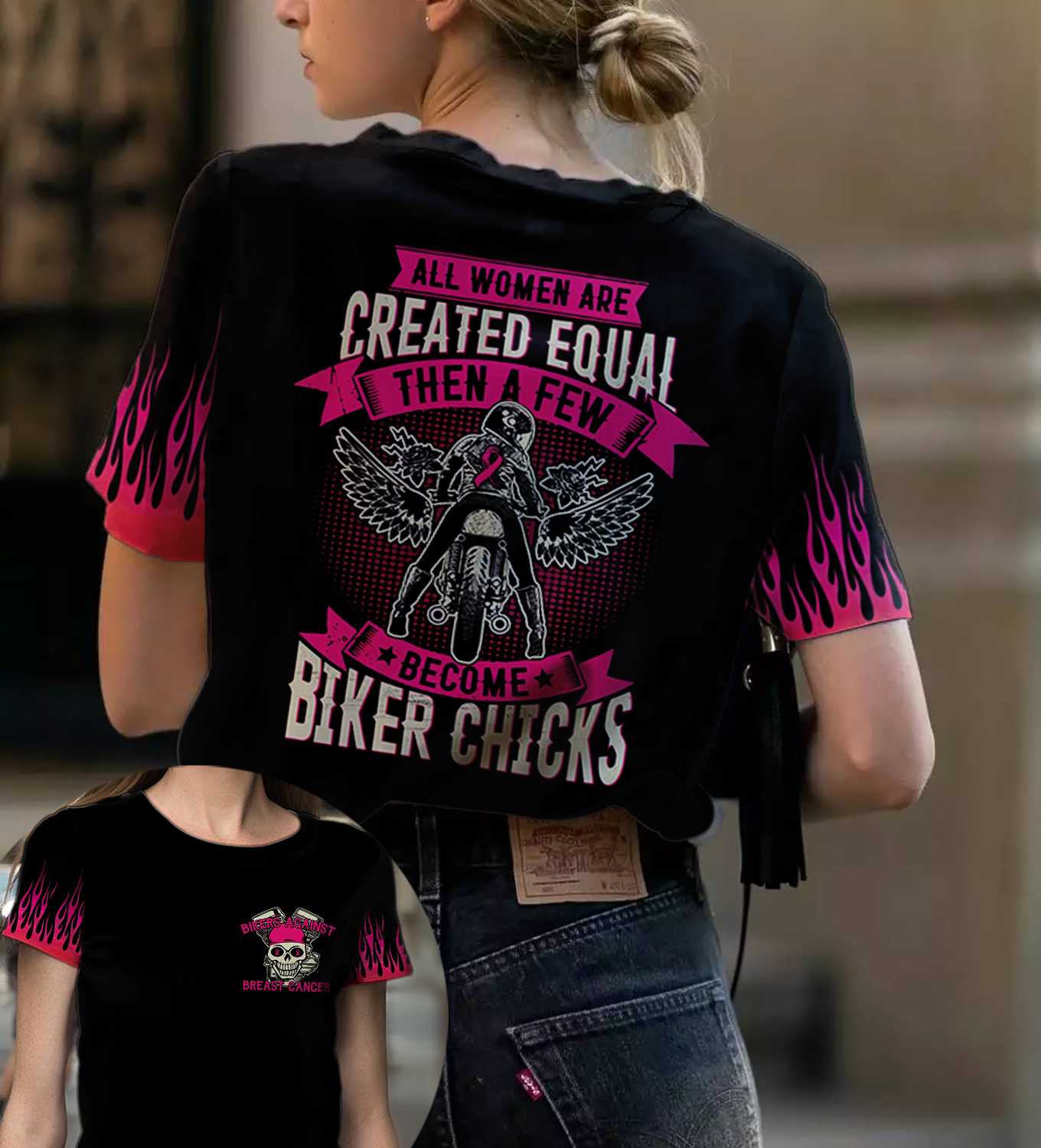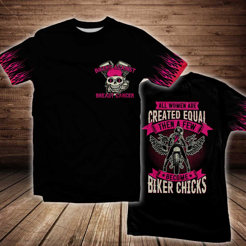 Bikers Against Breast Cancer All Over Print T-Shirt, Swag Breast Cancer Awareness Month Shirt With Sayings