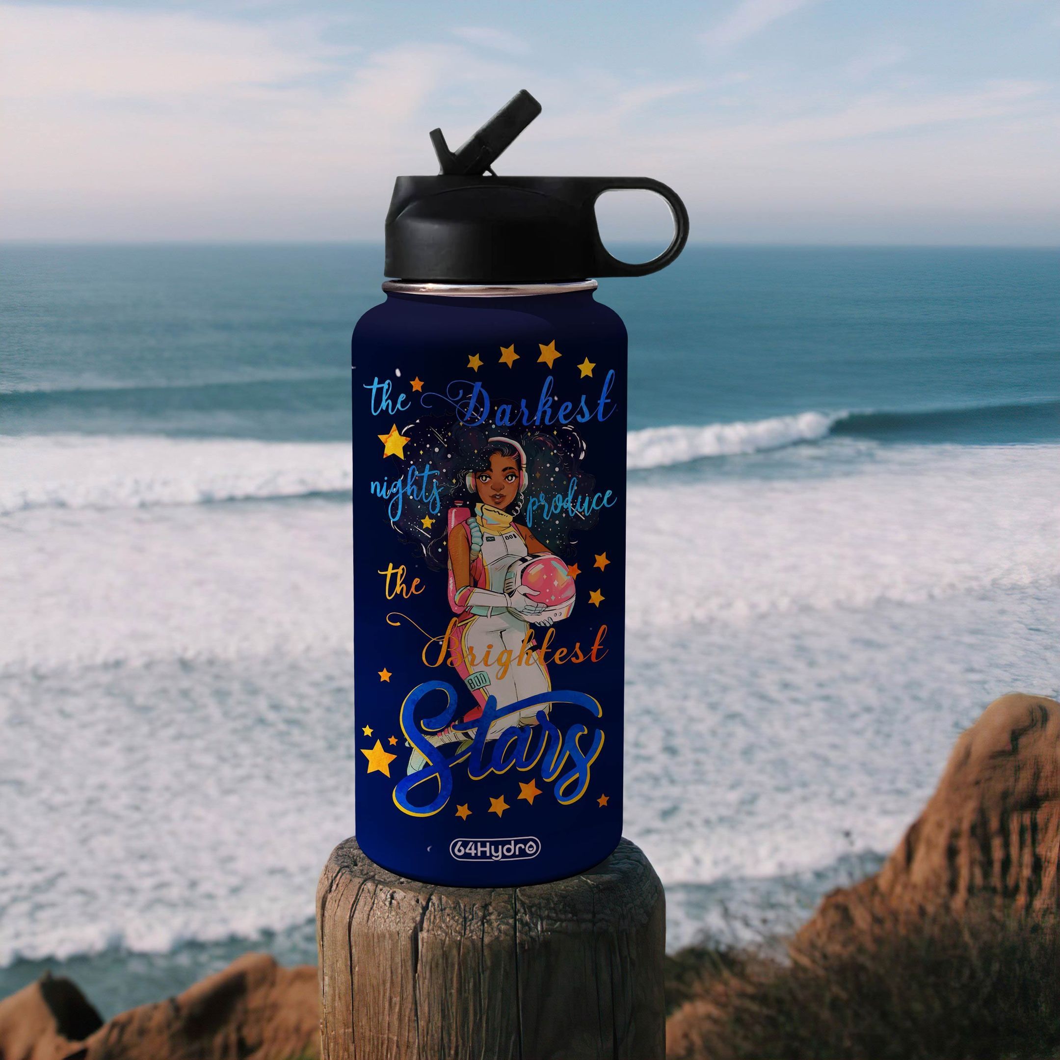 Black Astronaut Personalized Htr1509014 Stainless Steel Bottle With Straw Lid