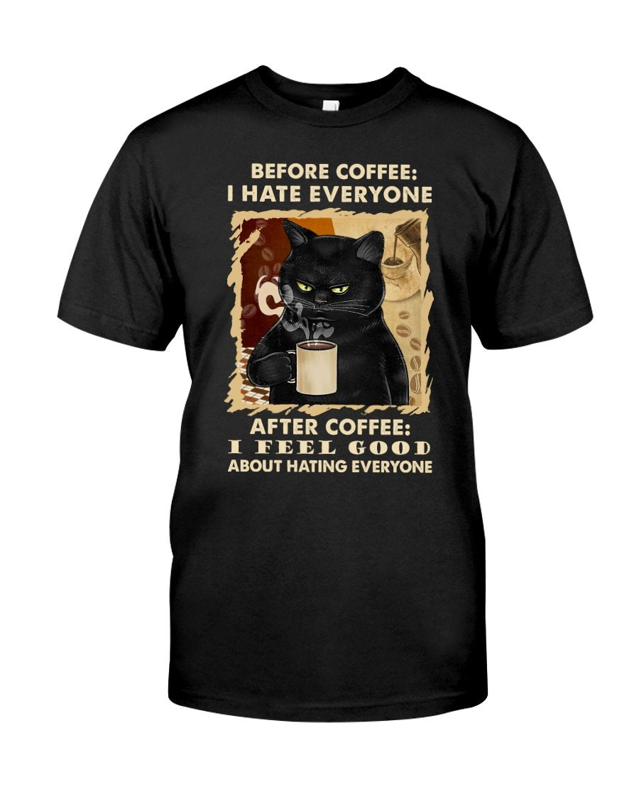 Black Cat I Hate Everyone With Coffee Customize Any Ideas, Personalized T-shirt, Hoodie Adult, Kid, Unisex