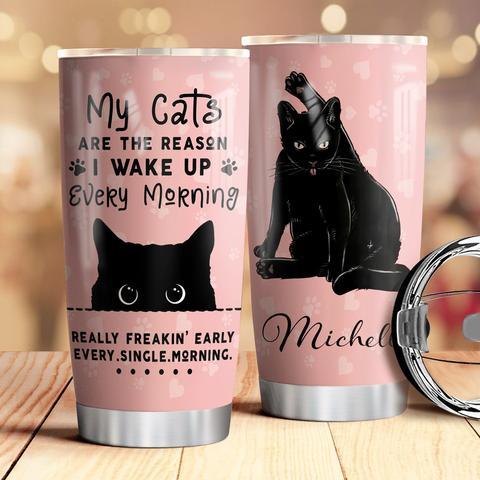 Black Cat Personalized Stainless Steel Tumbler, Personalized Tumblers, Tumbler Cups, Custom Tumblers