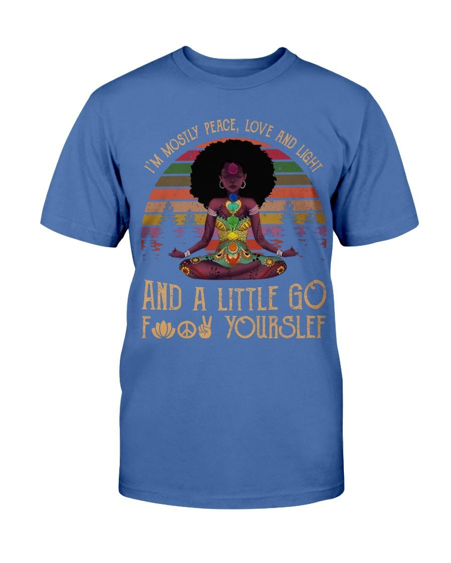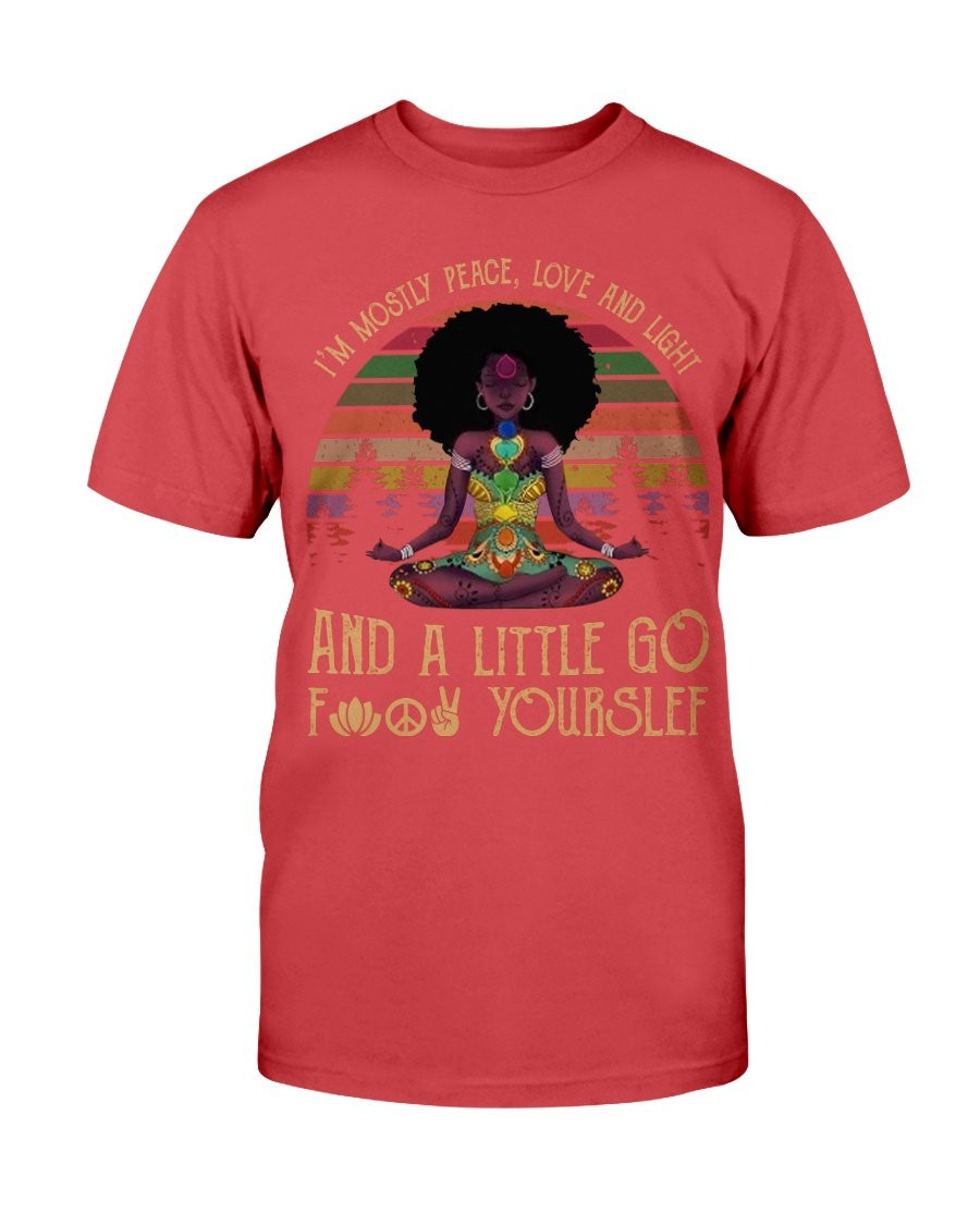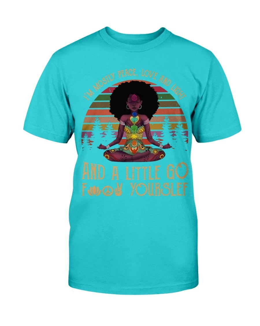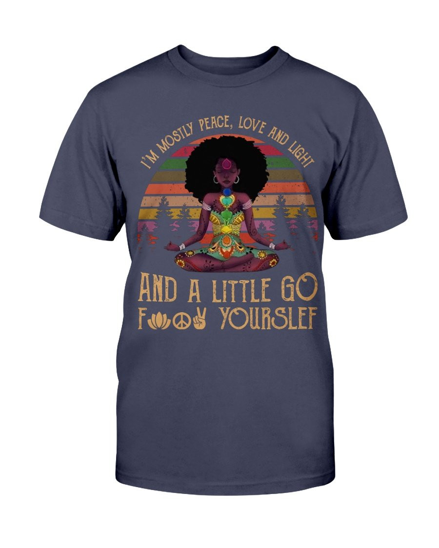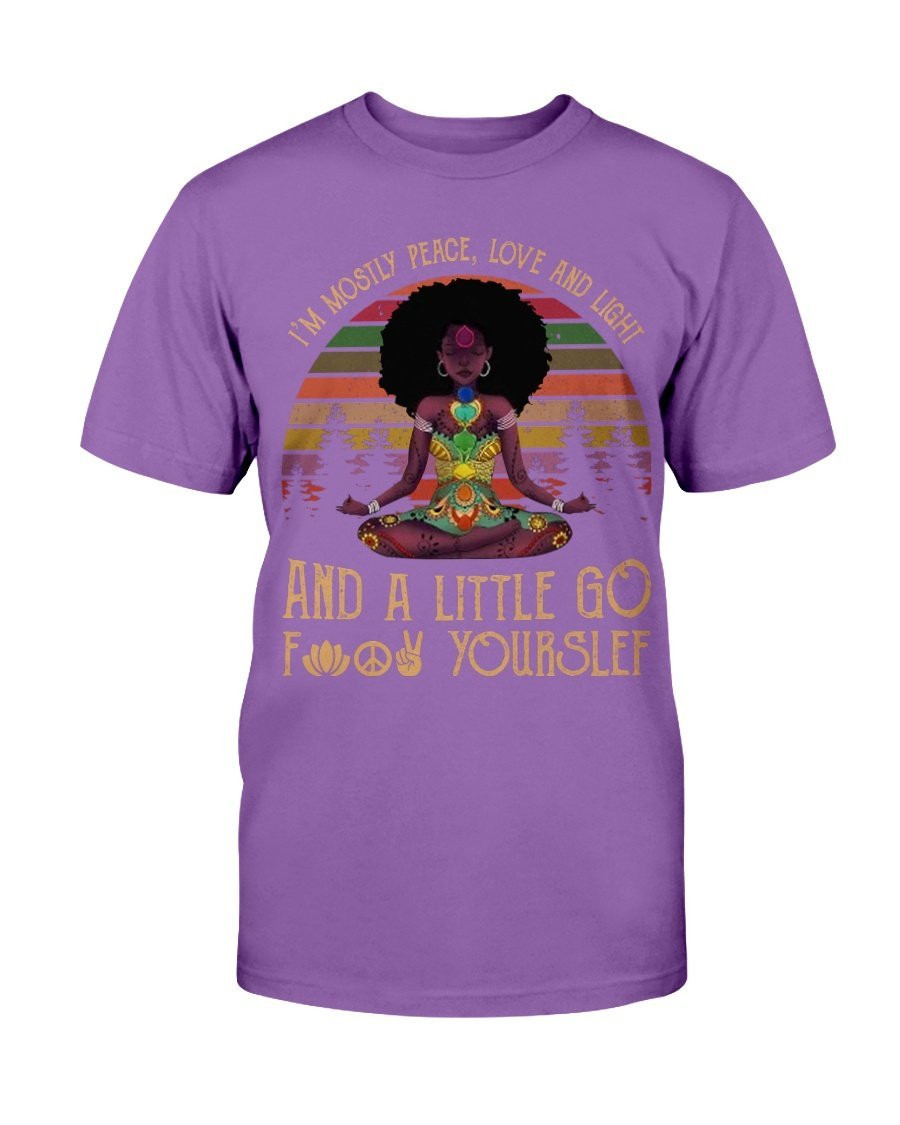 Black Girl Yoga IāM Mostly Peace Love And Light And A Little Go Fuck Yourself T-Shirt