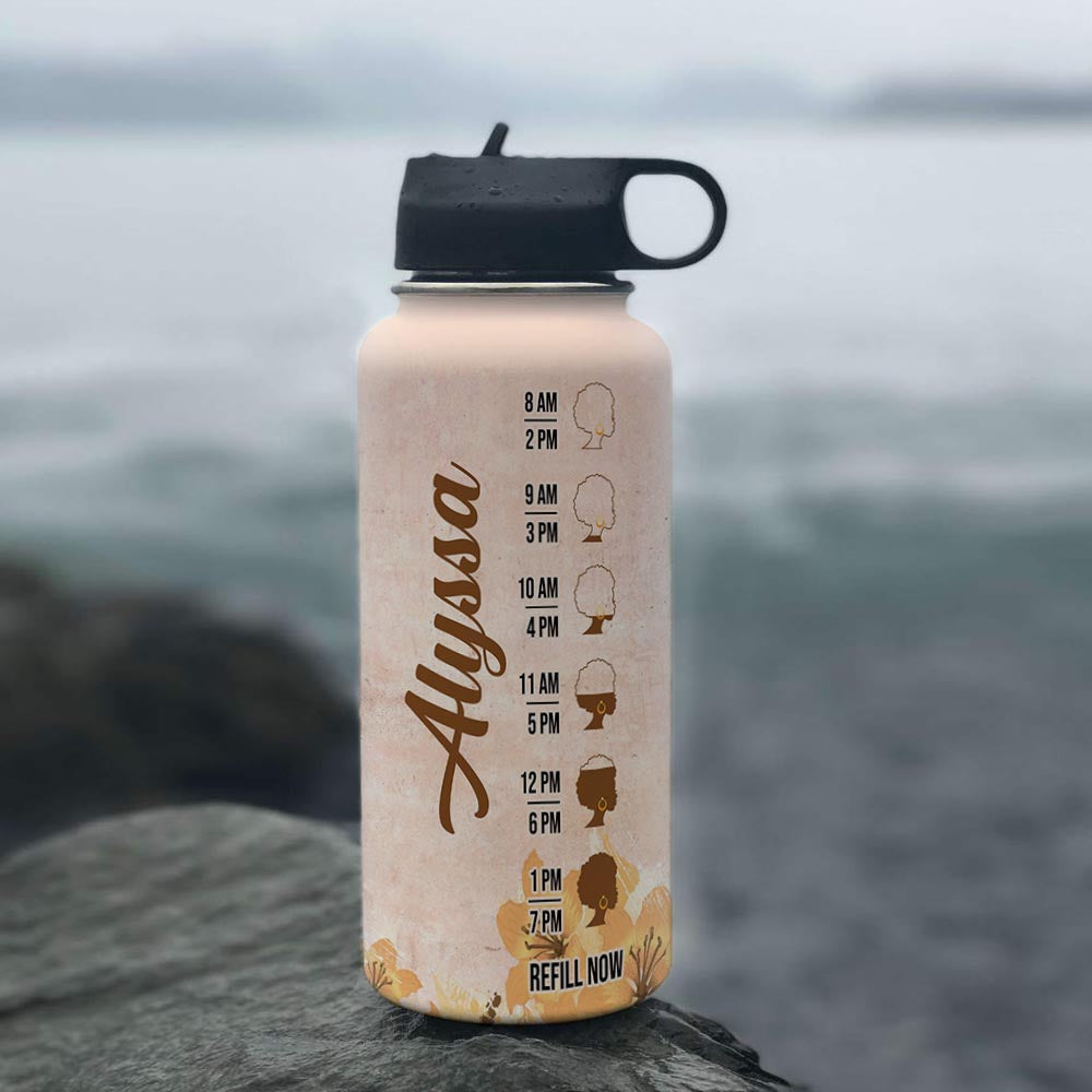 Black Women Kd4 Personalized Thaz2004009Z Stainless Steel Bottle With Straw Lid