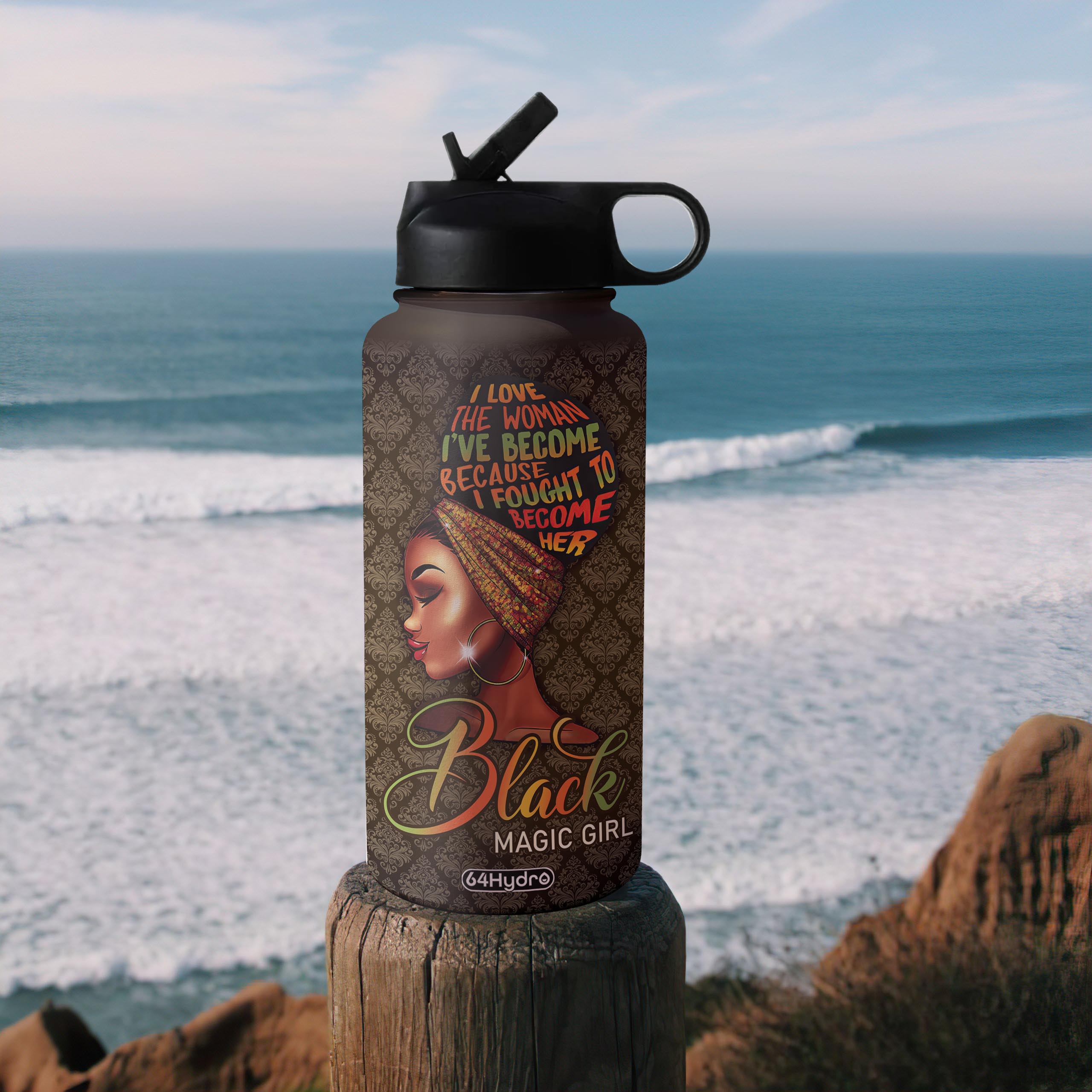 Black Women Personalized Nnrz2304001Z Stainless Steel Bottle With Straw Lid