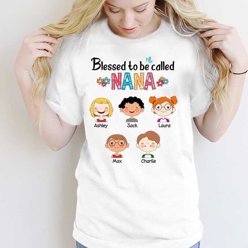 Blessed Grandma Colorful Family Kid Face Personalized Shirt