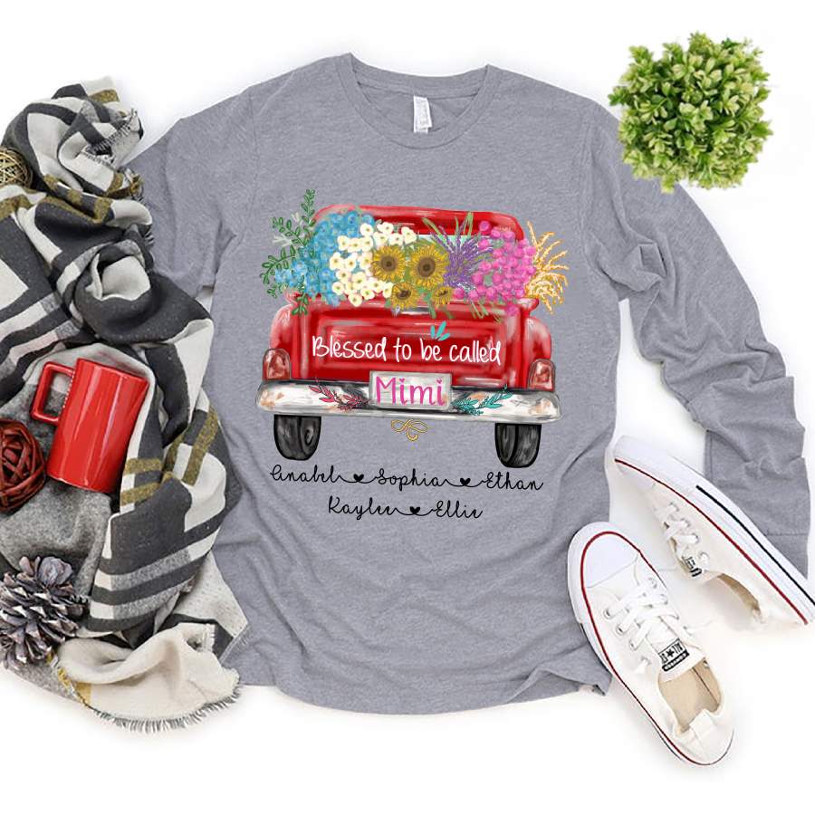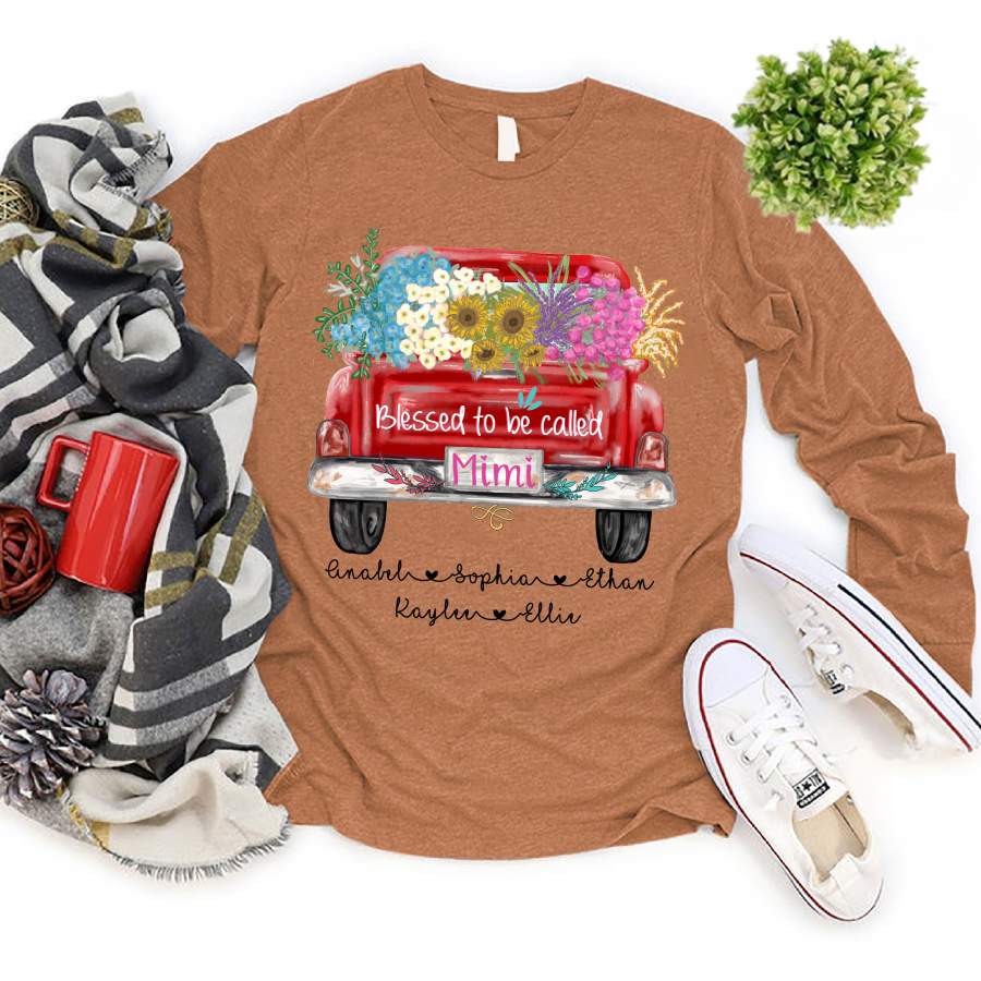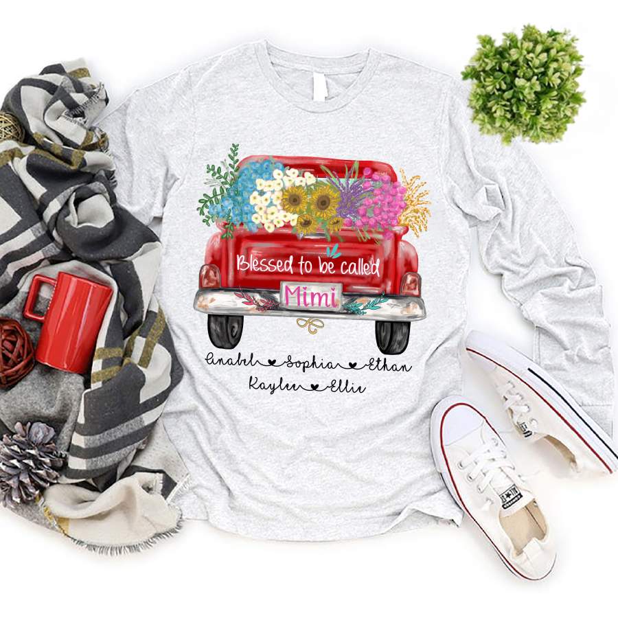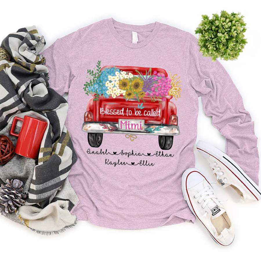 Blessed to be called Mimi – Truck Flowers Art | Personalized Long Sleeve T-Shirt