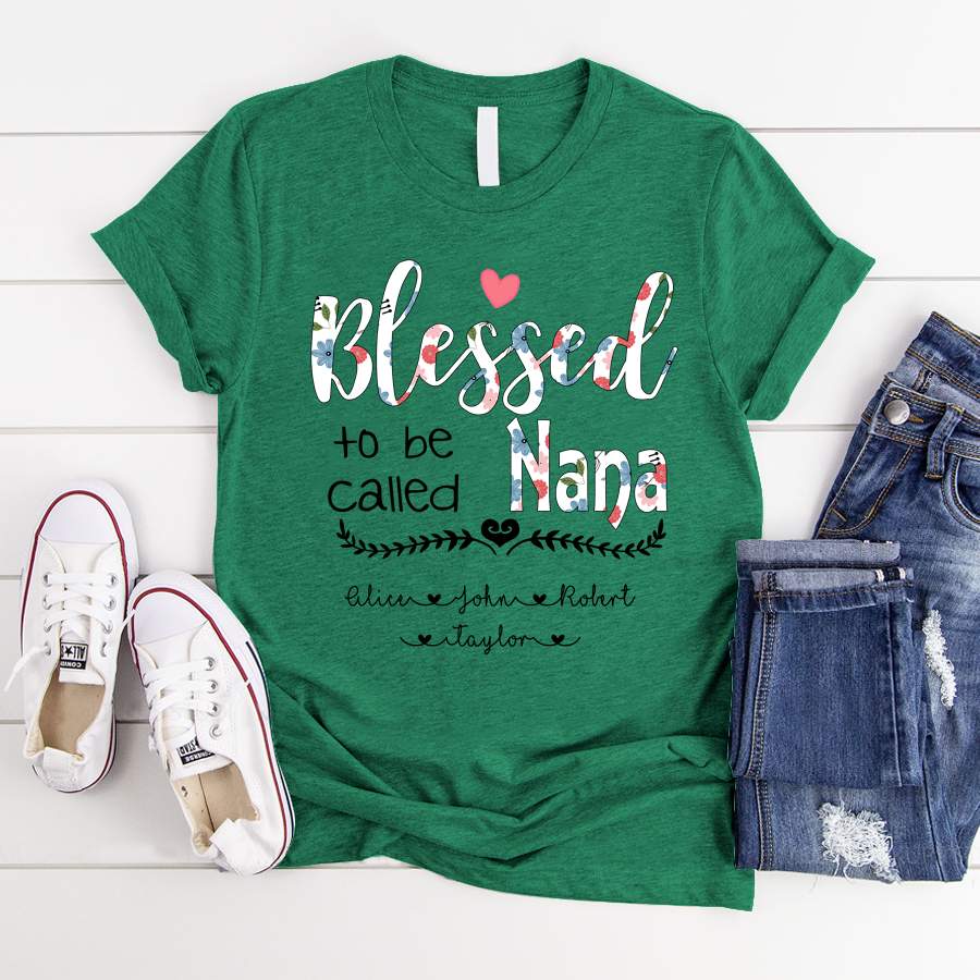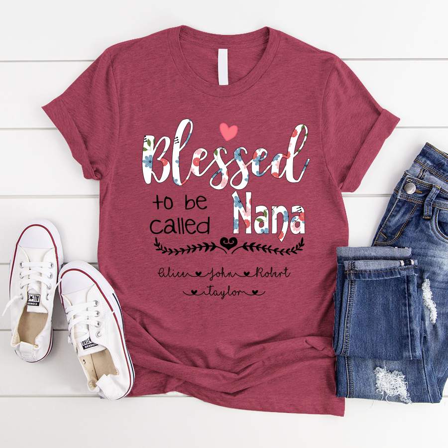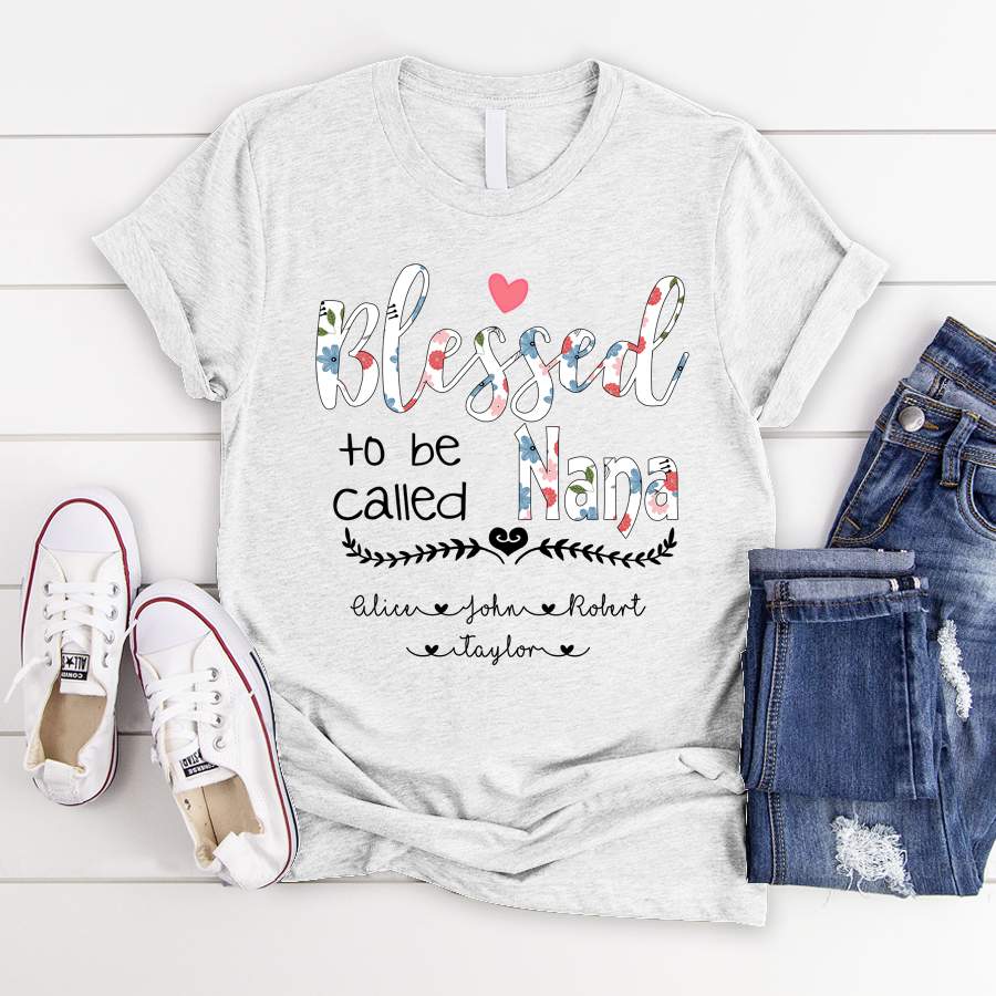 Blessed To Be Called Nana – Floral | Personalized T-shirt