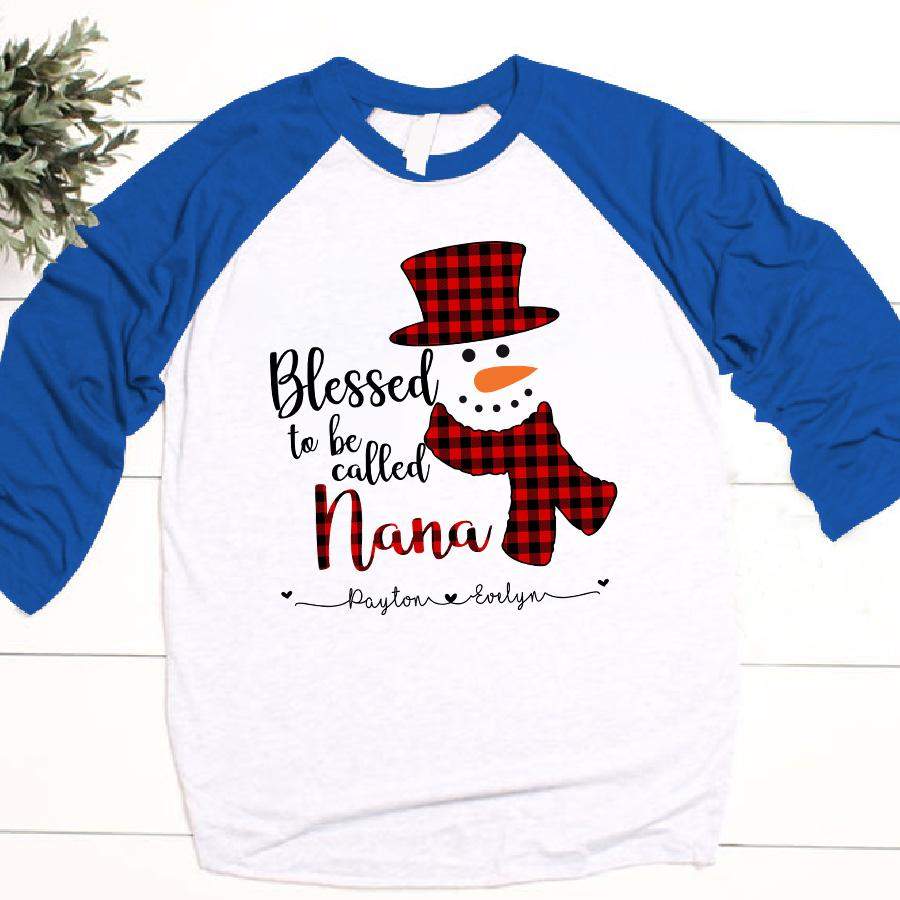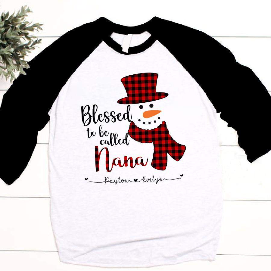 Blessed To Be Called Nana Red Plaid Snowman Christmas | Personalized Baseball T-shirt