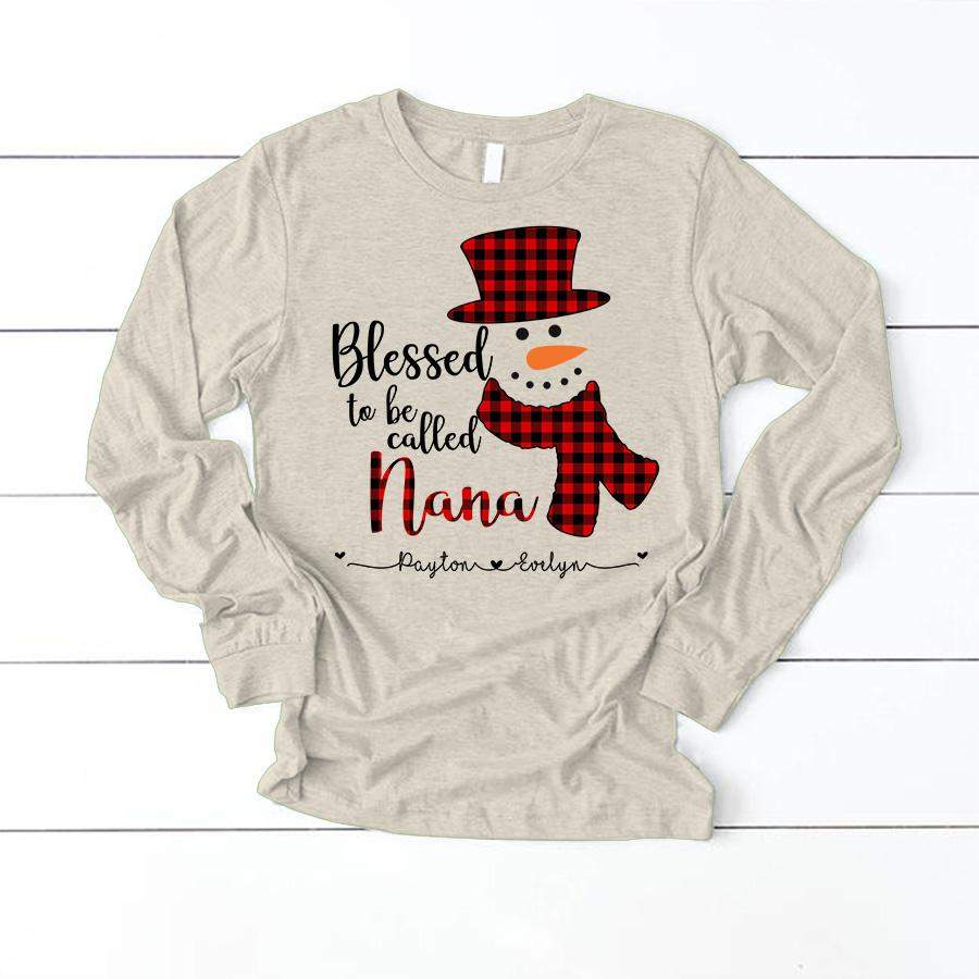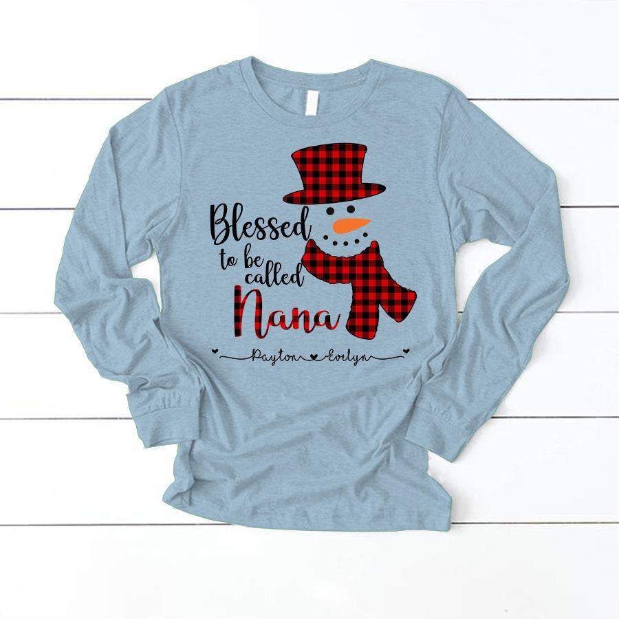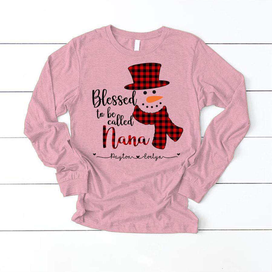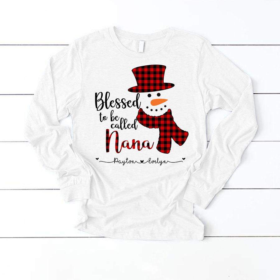 Blessed To Be Called Nana Red Plaid Snowman Christmas | Personalized Long Sleeve T-Shirt