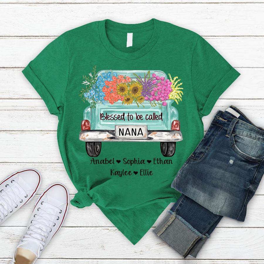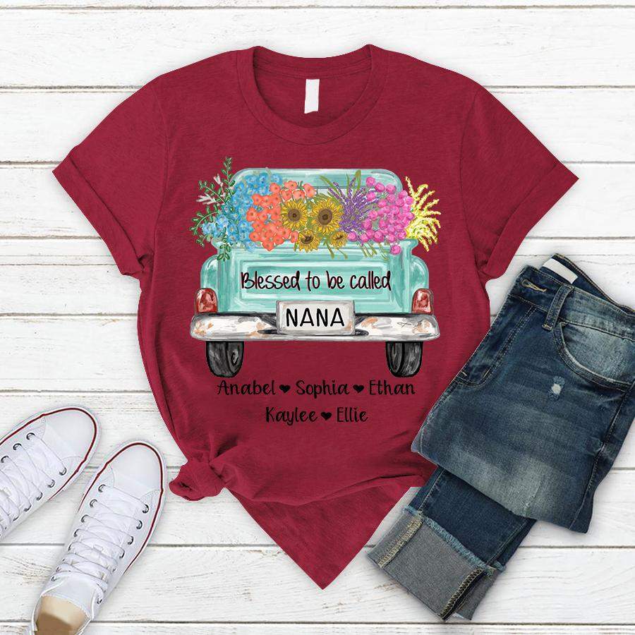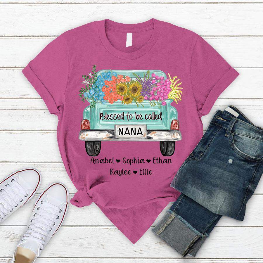 Blessed to be called Nana – Truck Flowers | Personalized T-shirt