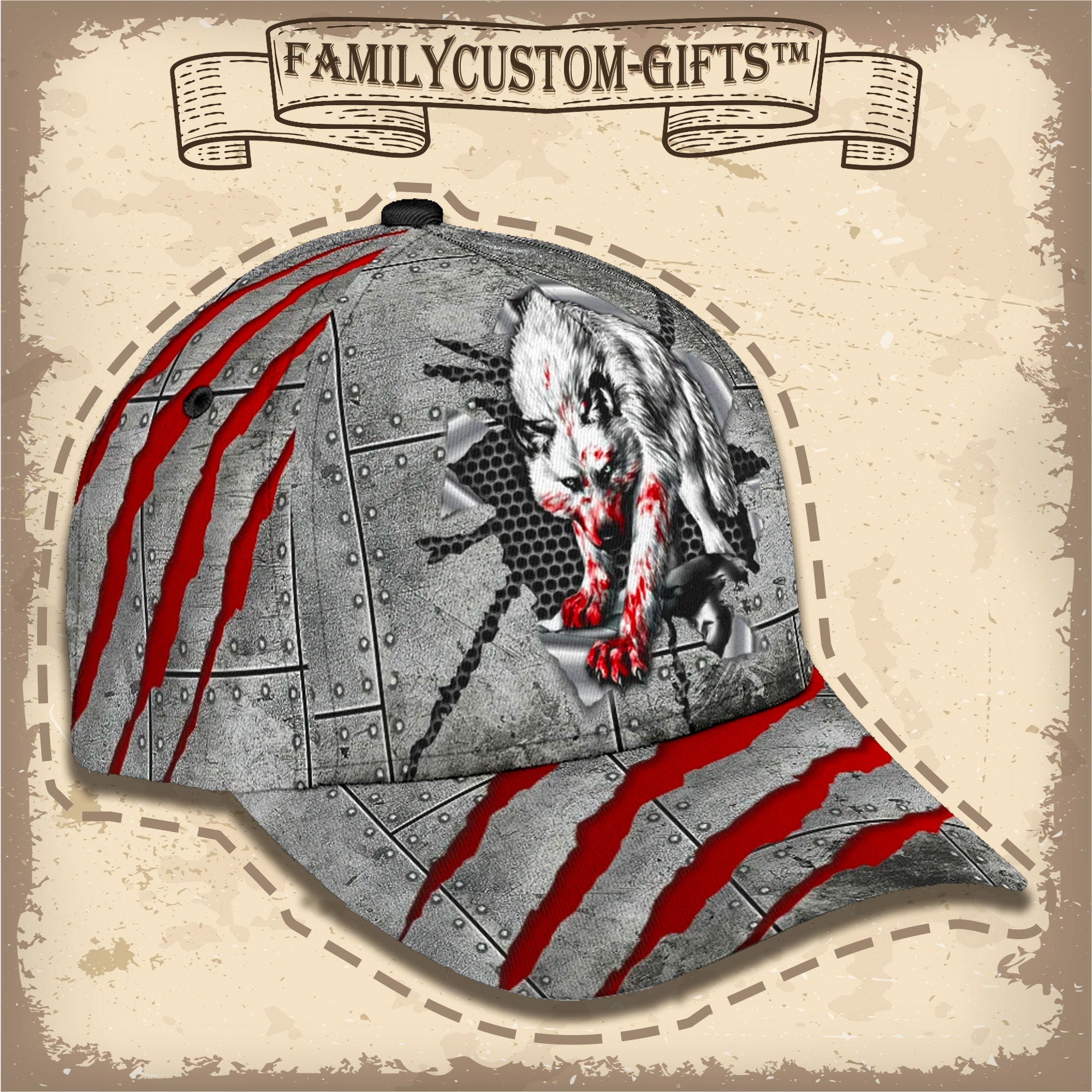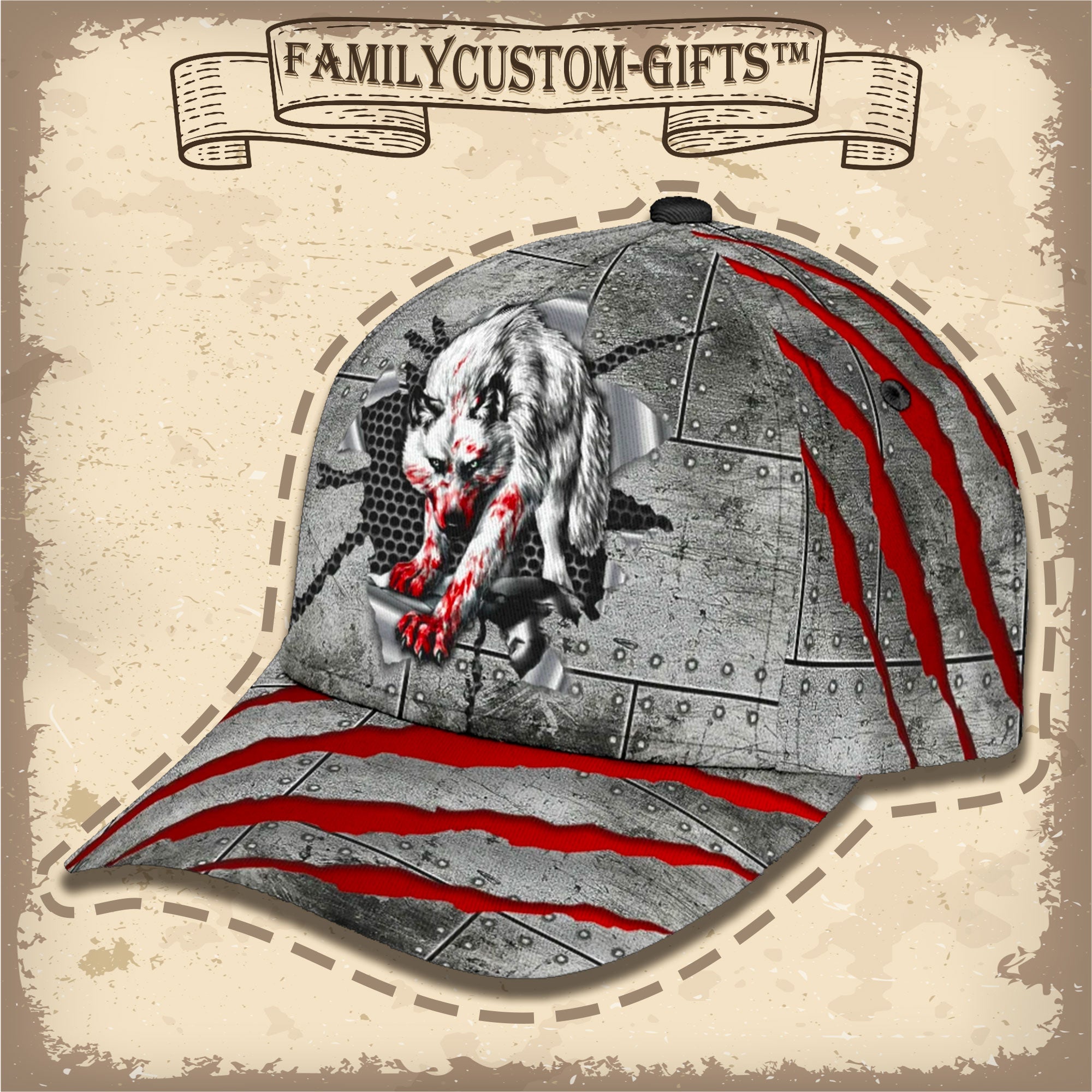 Blood Wolf Custom Hats For Men & Women 3D Prints Personalized Baseball Caps
