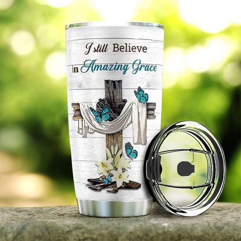 Blue Butterfly Cross Faith Kd2 Stainless Steel Tumbler, Personalized Tumblers, Tumbler Cups, Custom Tumblers