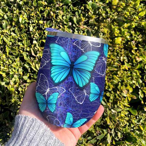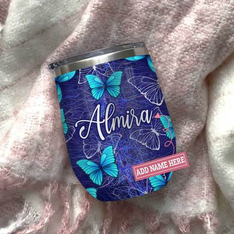 Blue Butterfly Personalized Wine Tumbler, Personalized Tumblers, Tumbler Cups, Custom Tumblers