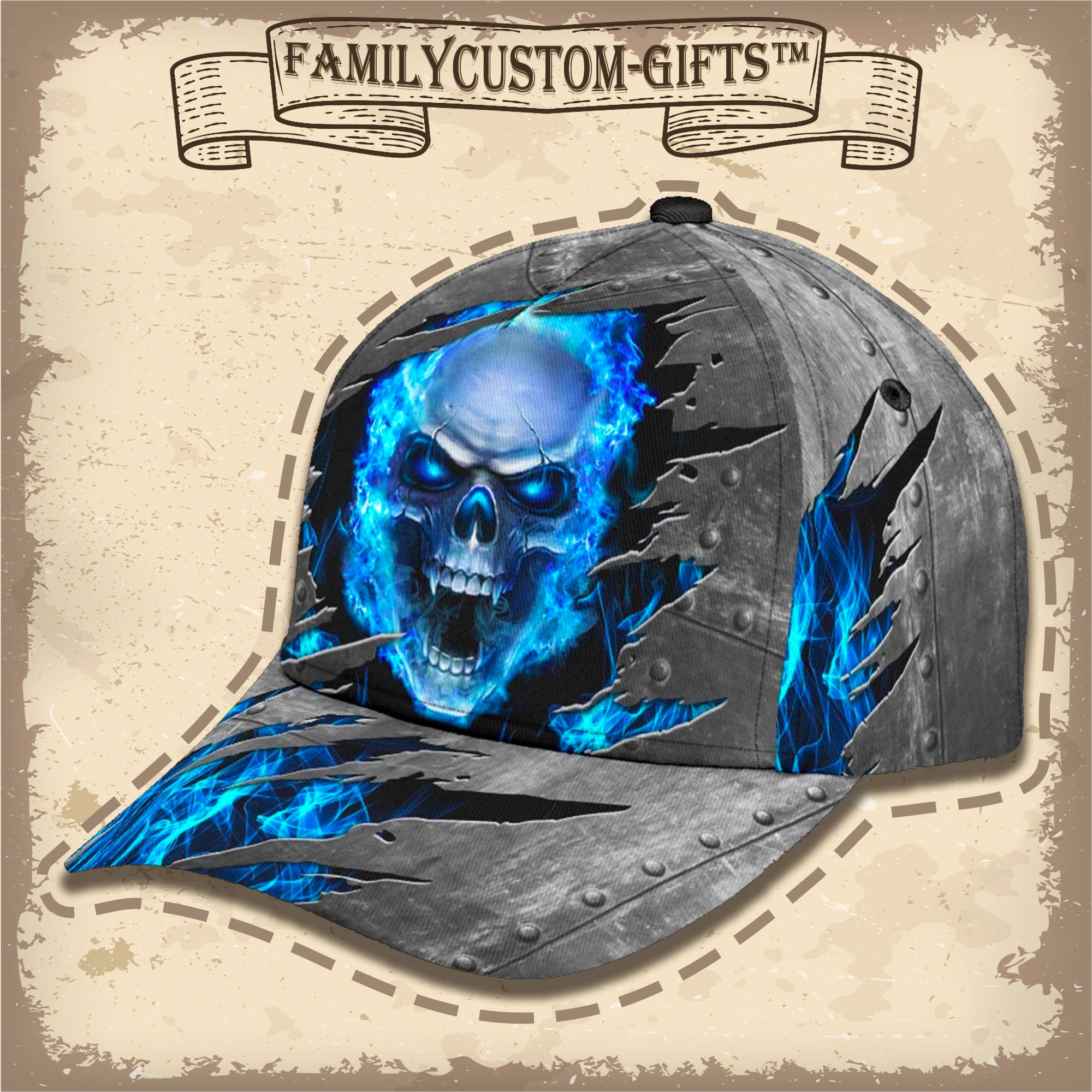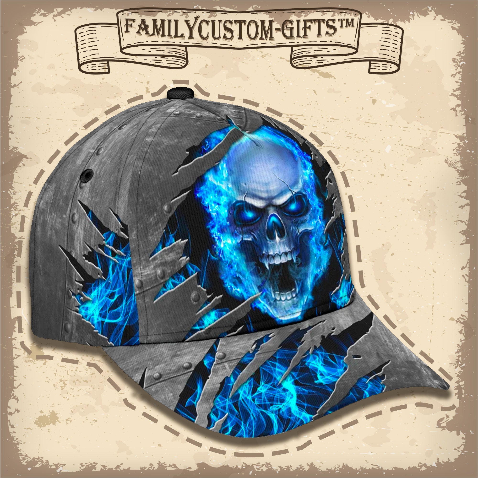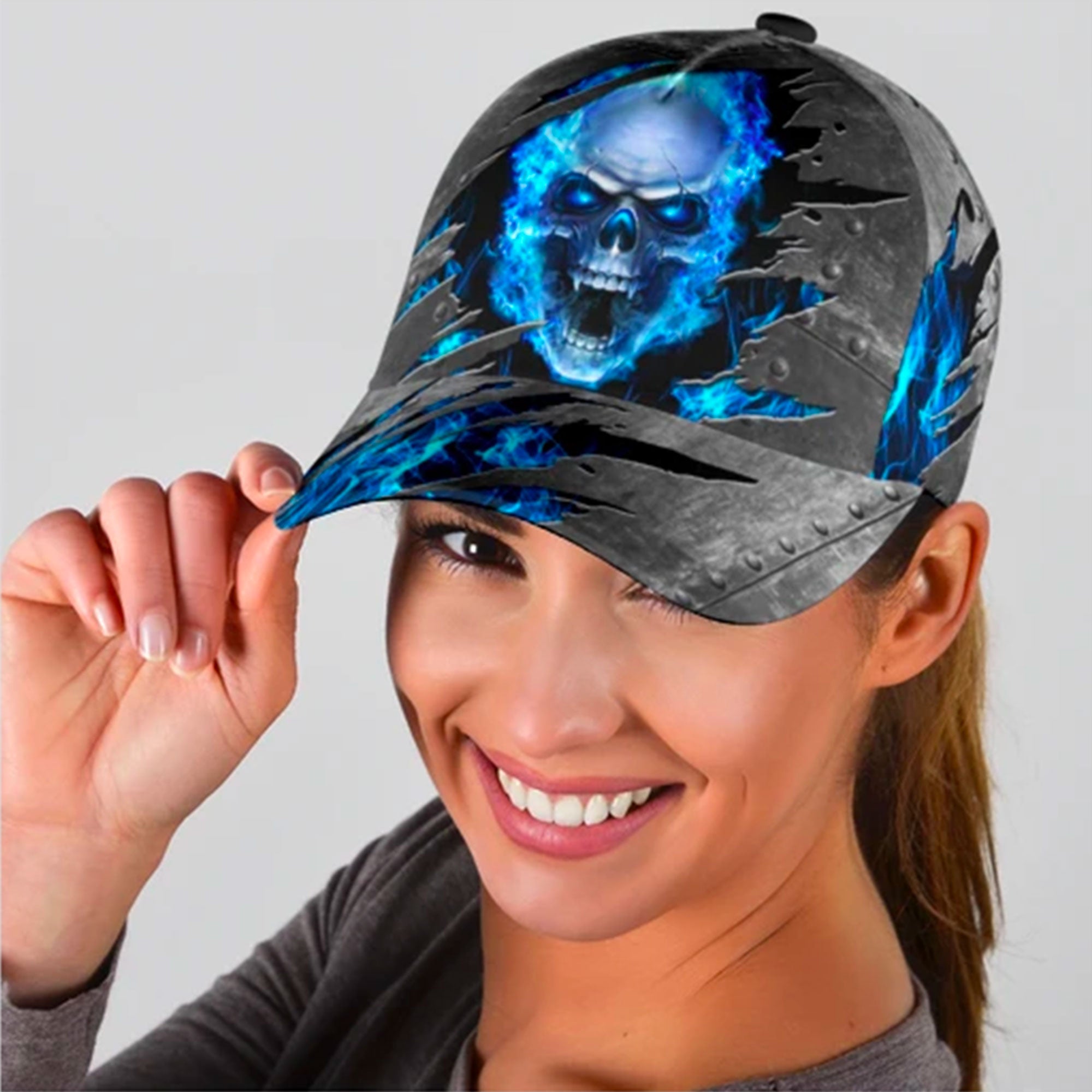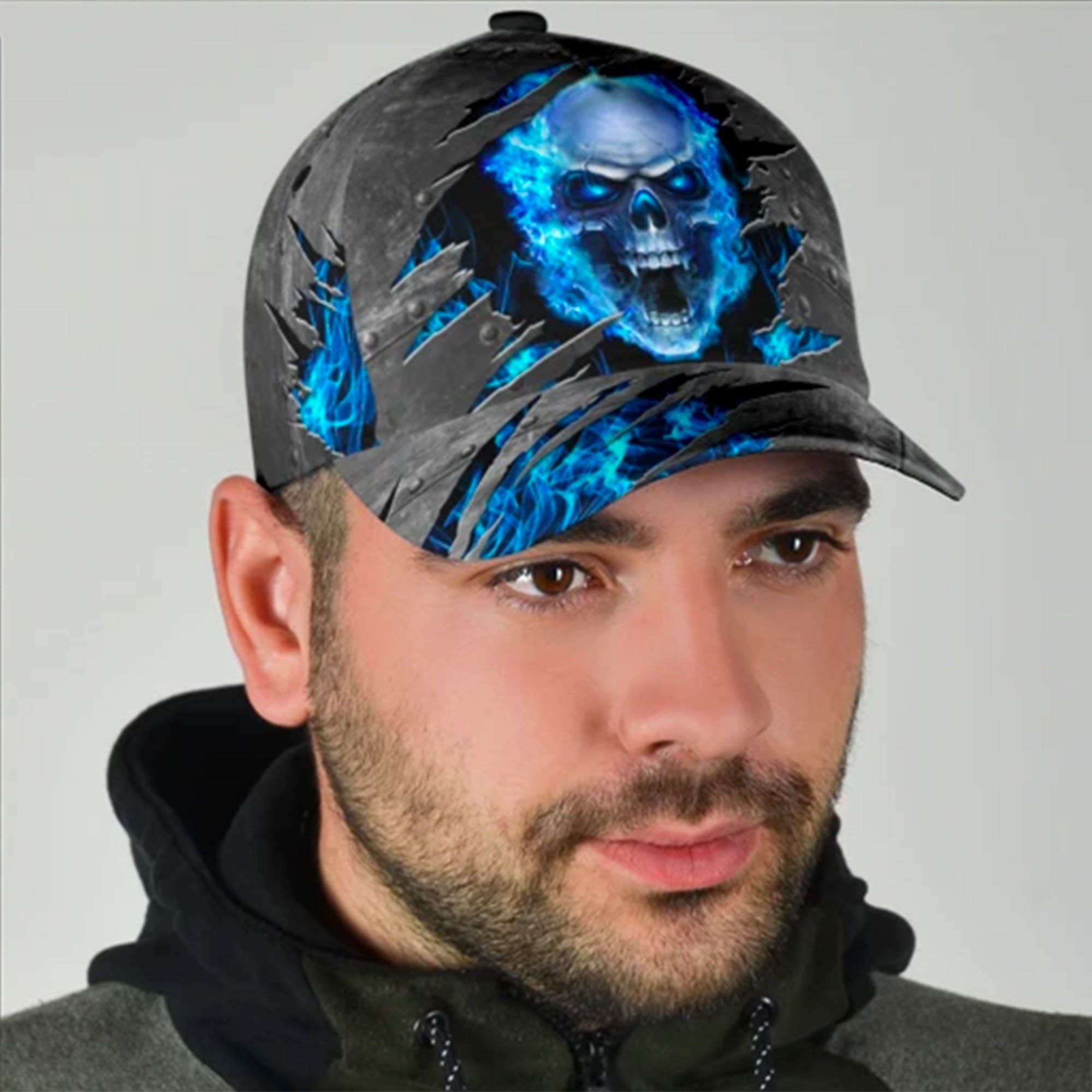 Blue Fire Skull Custom Hats For Men & Women 3D Prints Personalized Baseball Caps