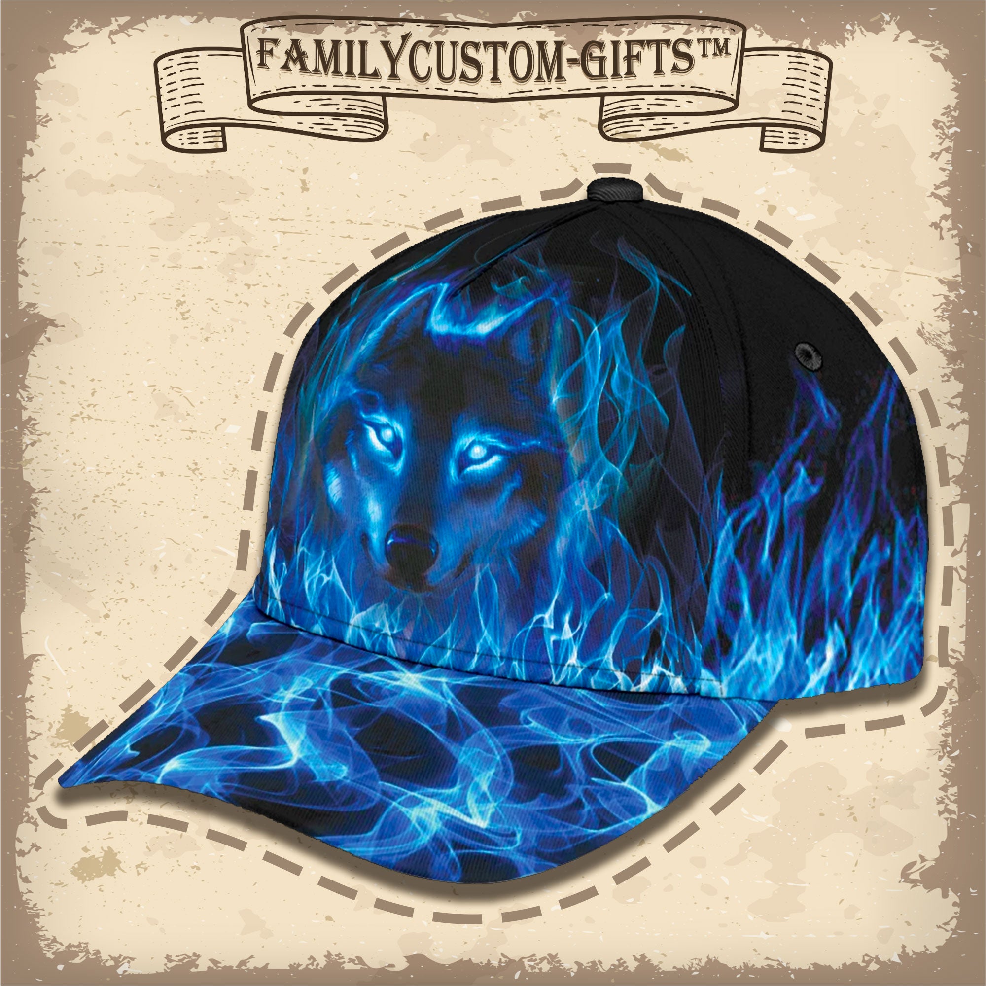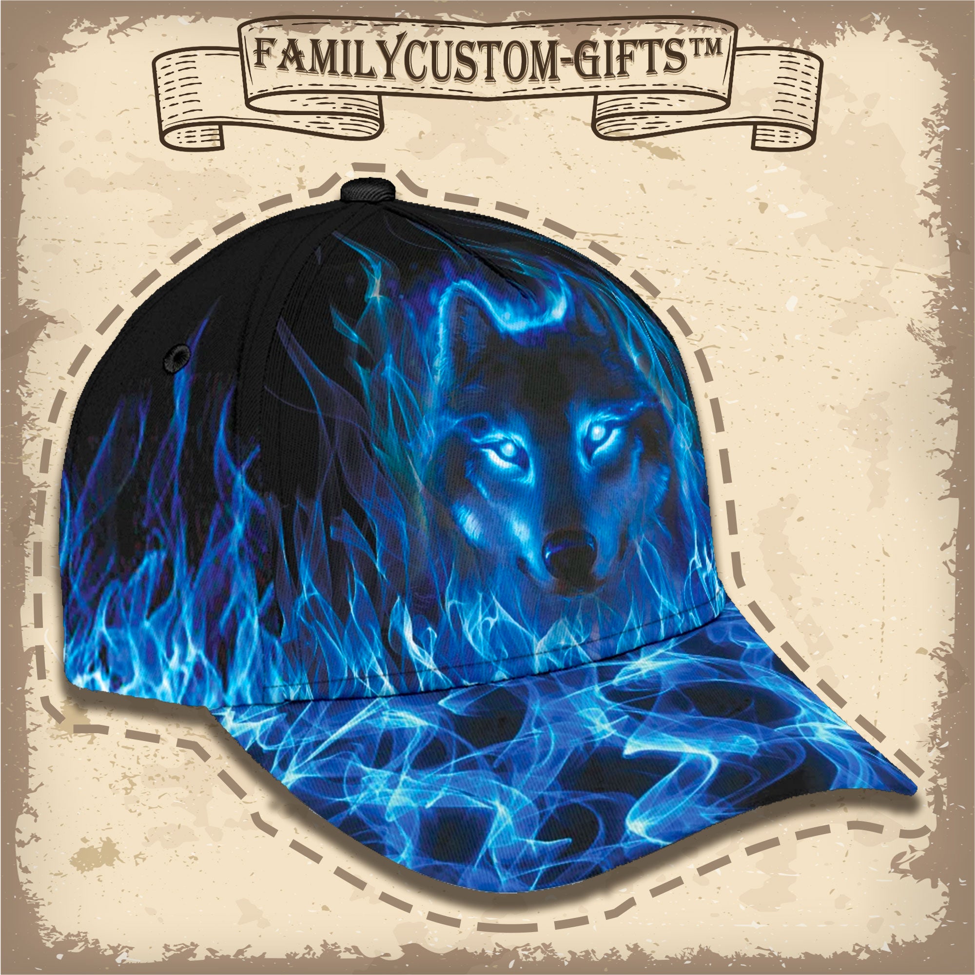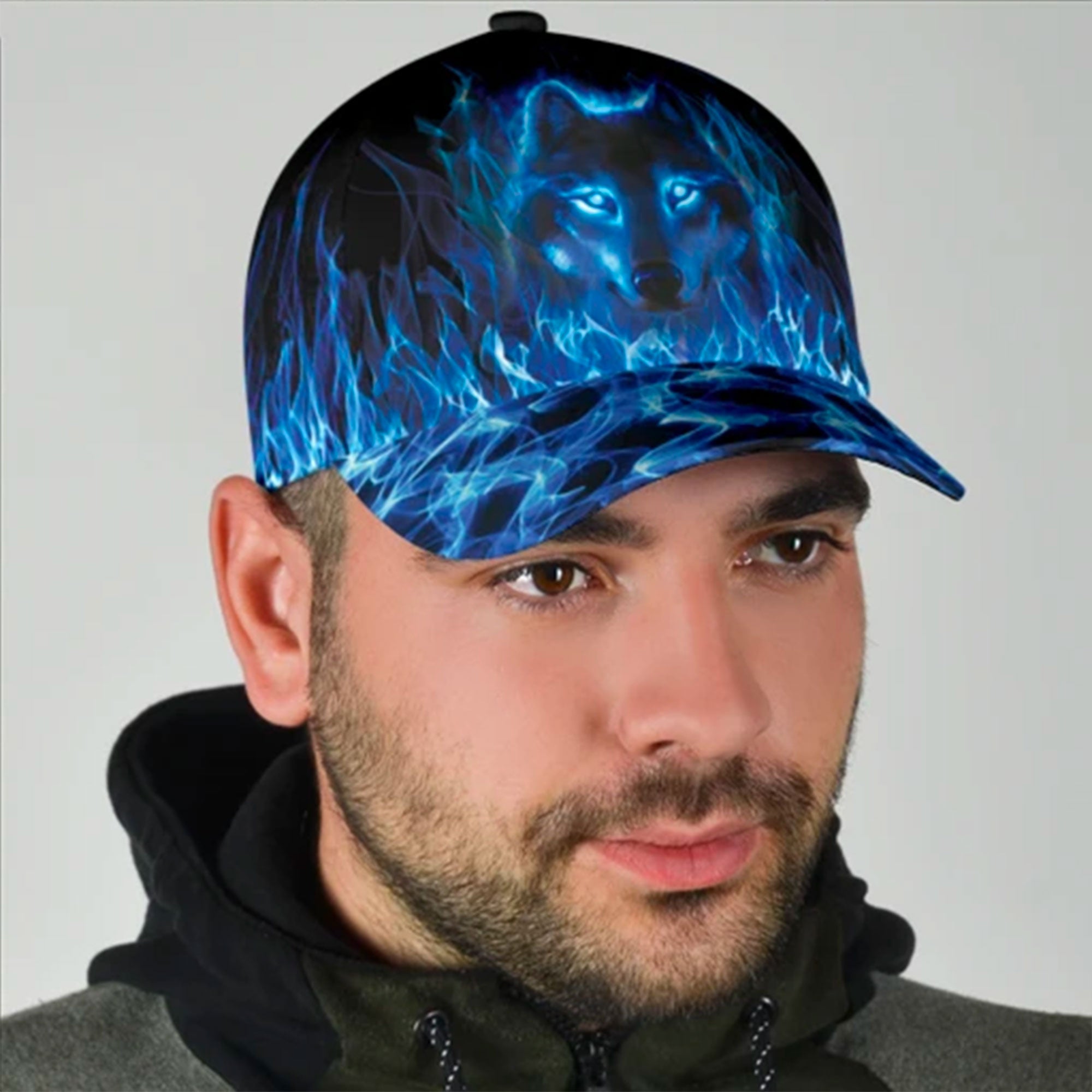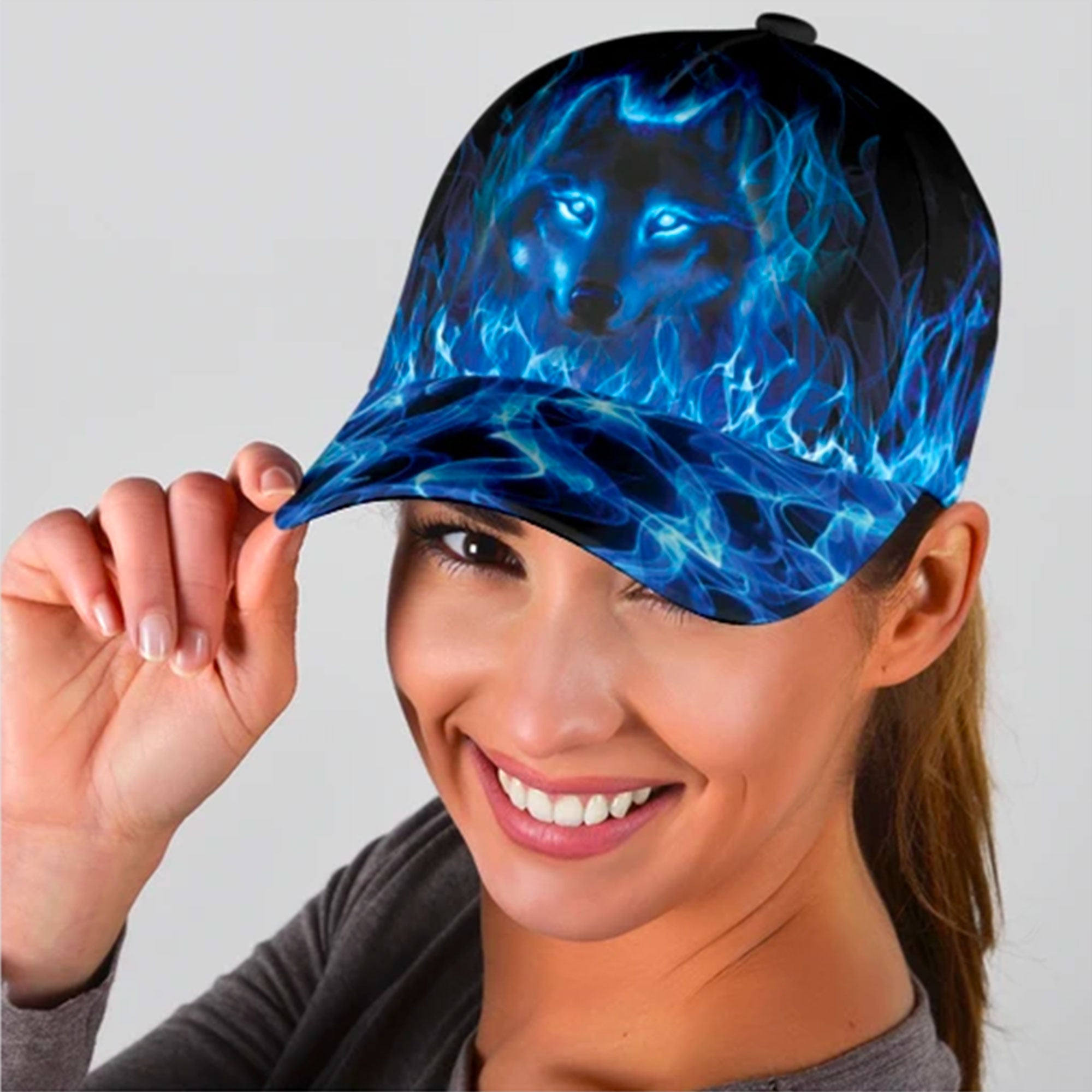 Blue Fire Wolf Custom Hats For Men & Women 3D Prints Personalized Baseball Caps