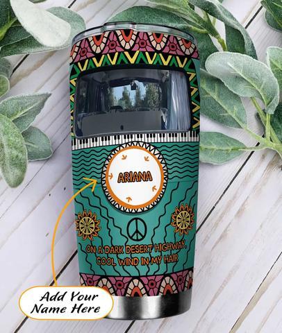 Boho Pattern Cartoon Hippie Van Personalized Kd2 Stainless Steel Tumbler, Personalized Tumblers, Tumbler Cups, Custom Tumblers