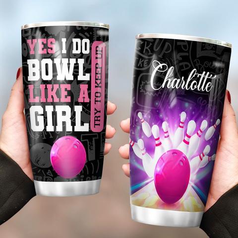 Bowl Like A Girl Personalized Stainless Steel Tumbler, Personalized Tumblers, Tumbler Cups, Custom Tumblers