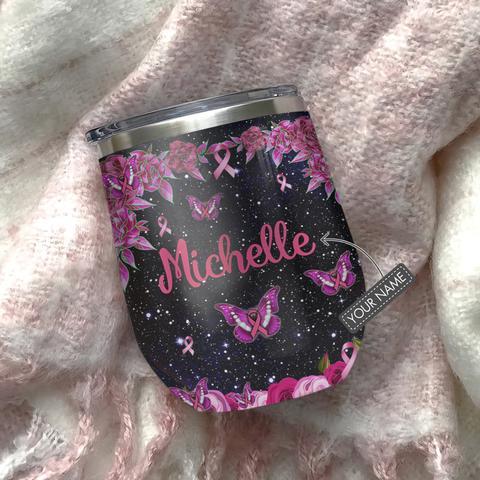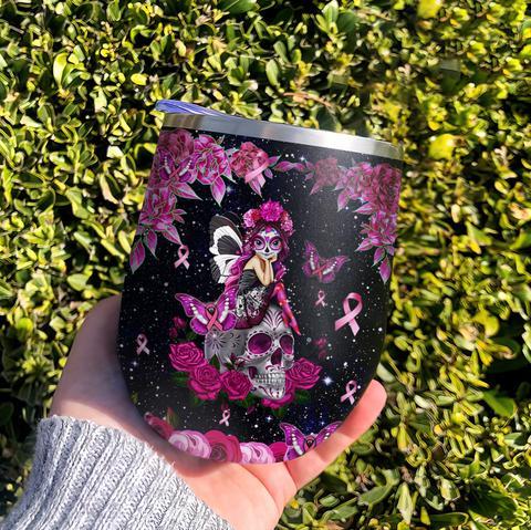 Brc Pink Warrior Fairy Skull Personalized Wine Tumbler, Personalized Tumblers, Tumbler Cups, Custom Tumblers