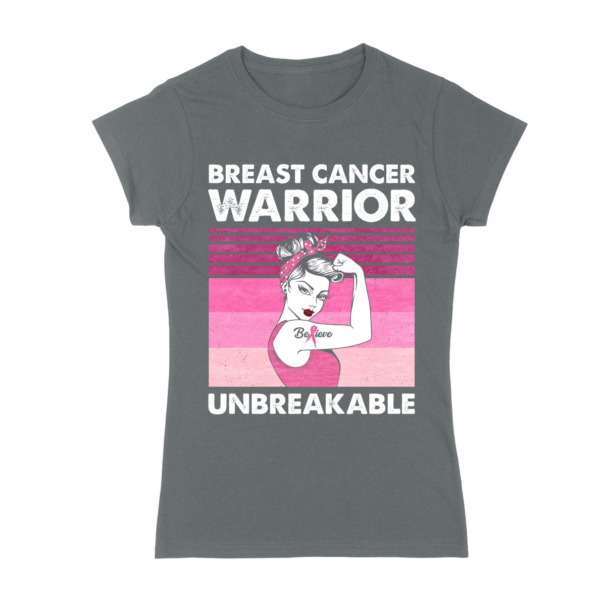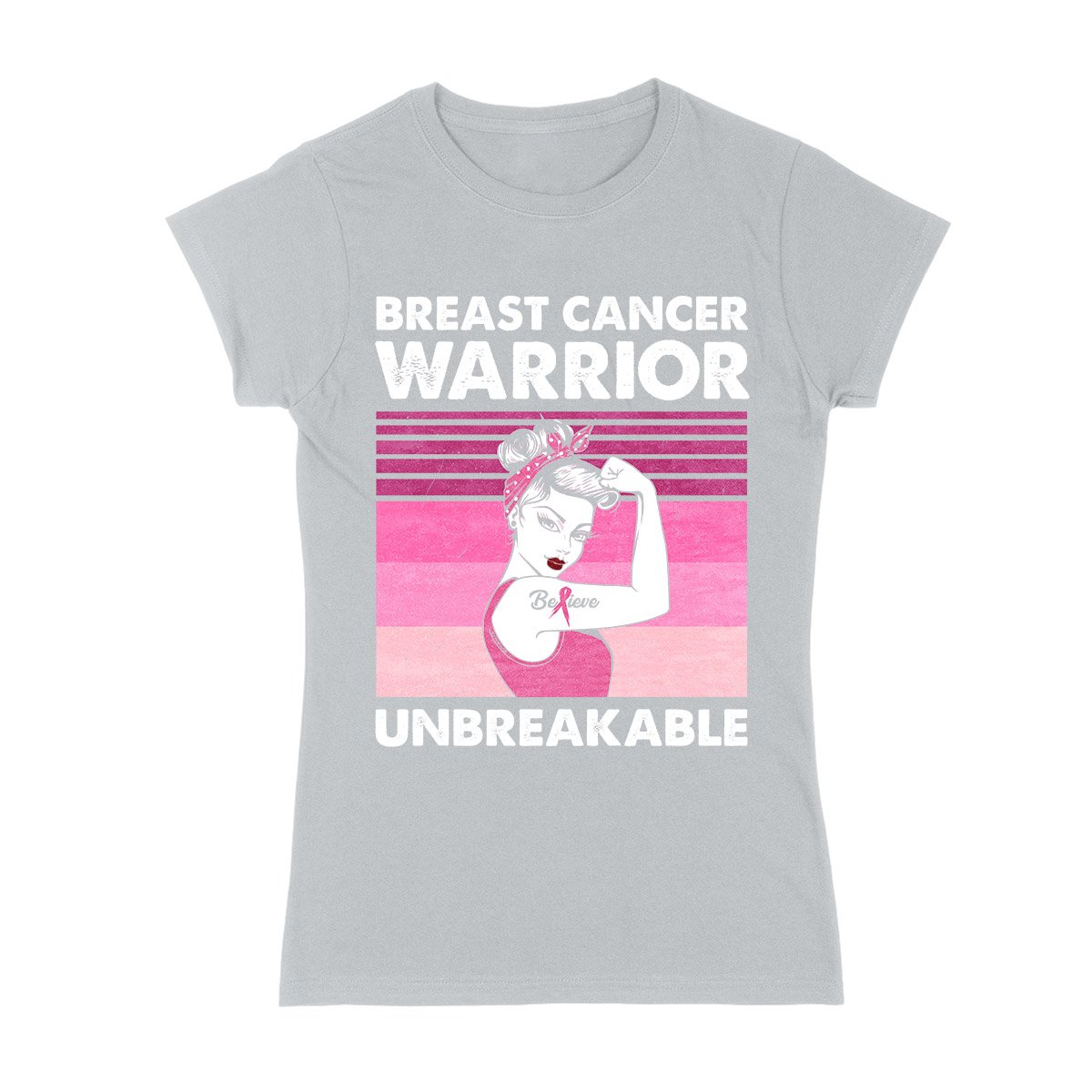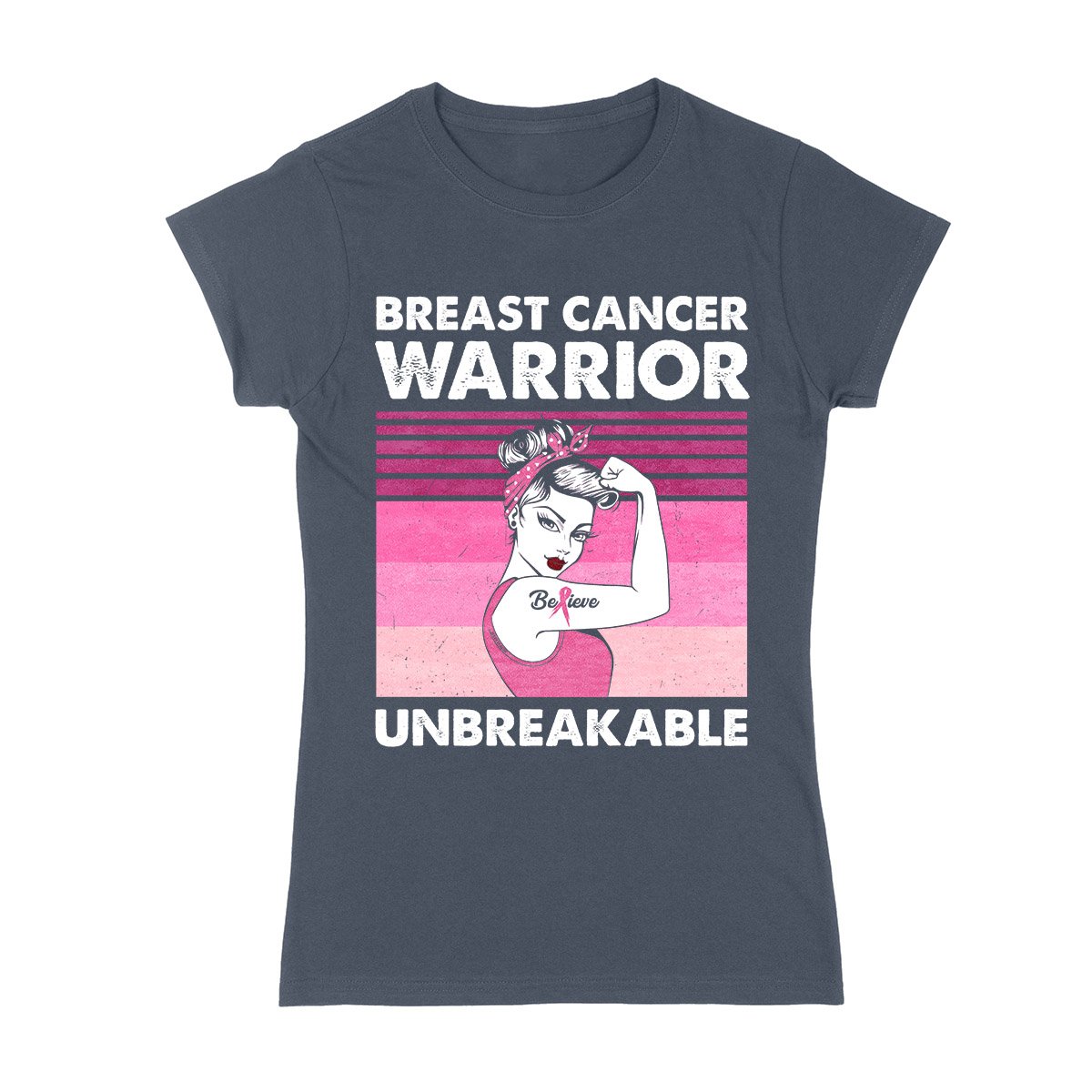 Breast Cancer Awareness Warrior Unbreakable Retro 02 Ez01 Ladies T-Shirt