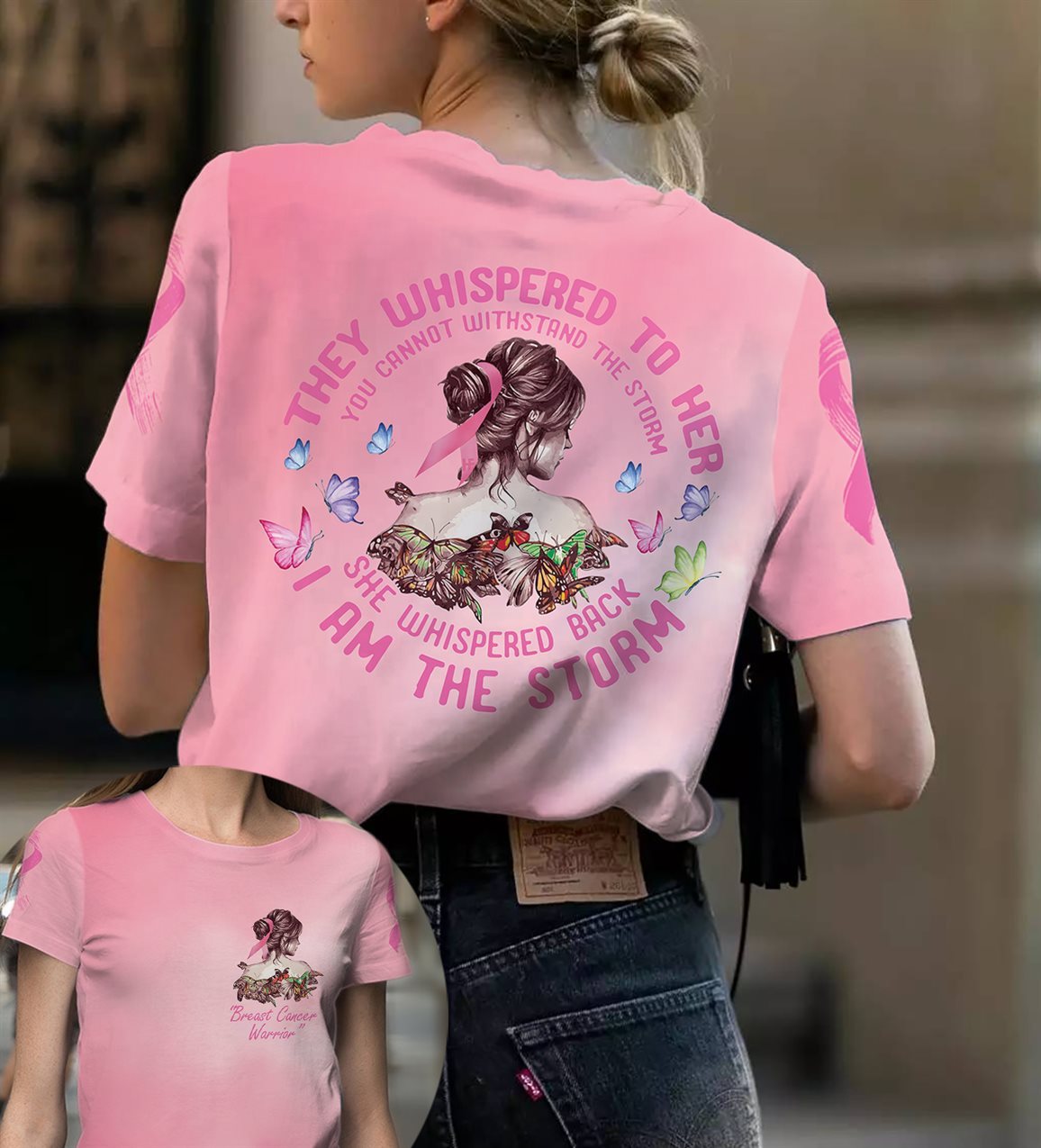 Breast Cancer I Am The Storm All Over Print T-Shirt, Pink Breast Cancer Awareness Shirt For Women