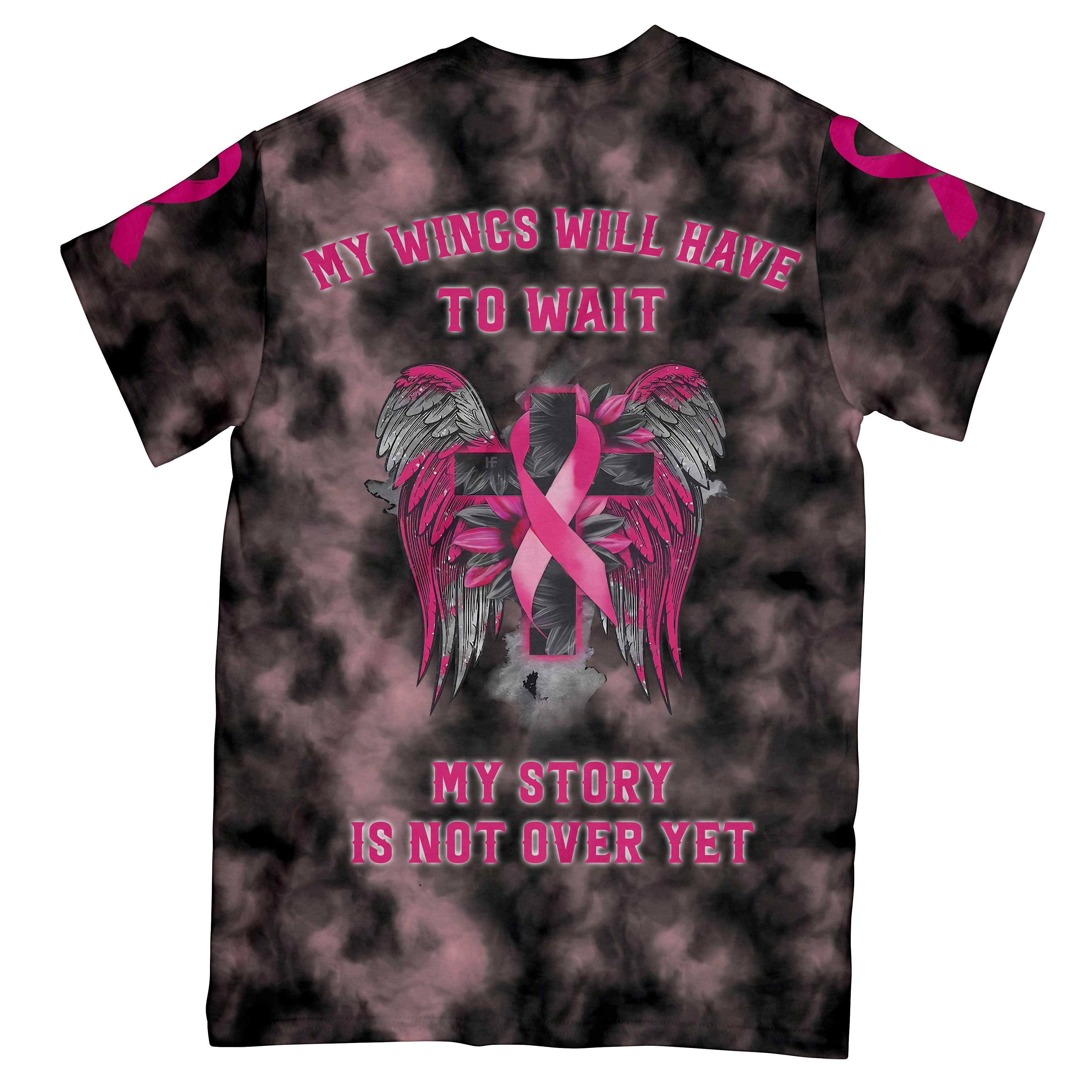 Breast Cancer My Wings Will Have To Wait All Over Print T-Shirt, Inspirational Breast Cancer Awareness Month Shirt