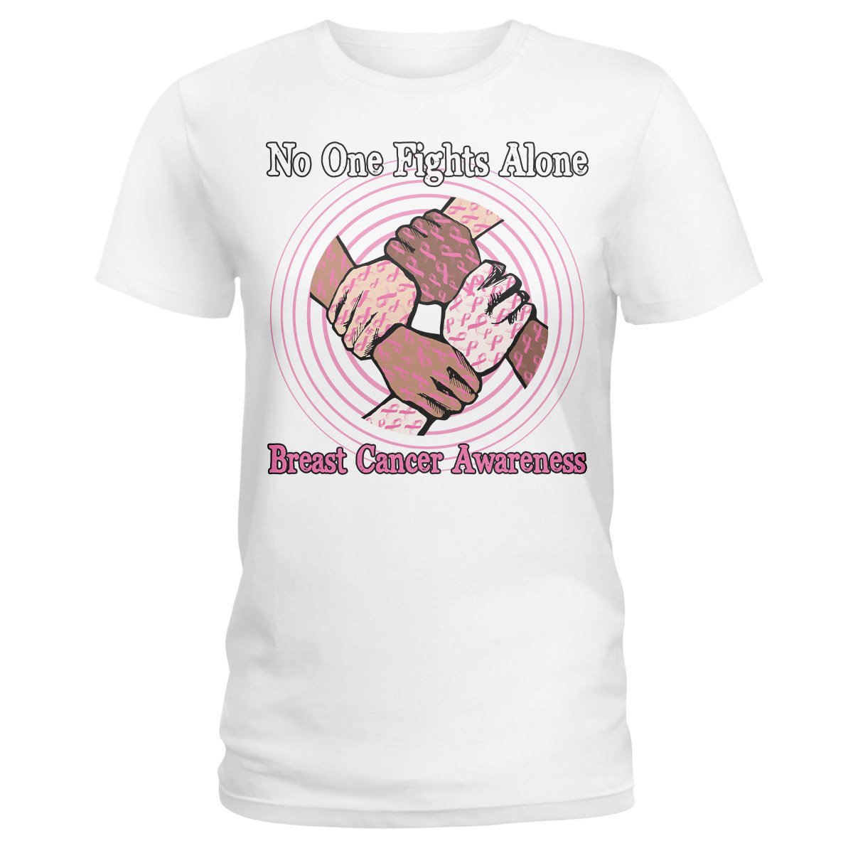 Breast Cancer No One Fights Alone, Joint Hand Breast Cancer Awareness Ladies T-Shirt