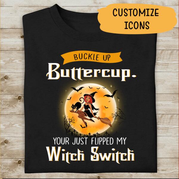 Buckle Up Buttercup You Just Flipped My Witch Switch Personalized T-Shirt For Friend Halloween Shirt
