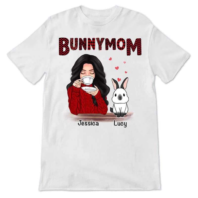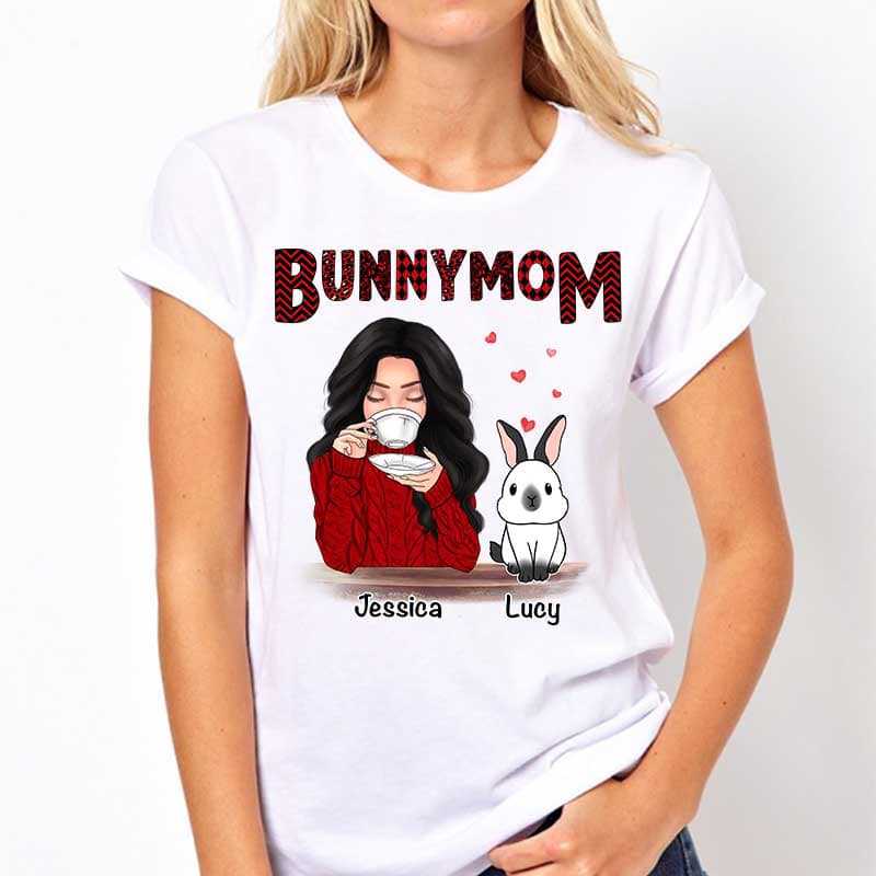 Bunny Mom Red Patterned Rabbit Personalized Shirt