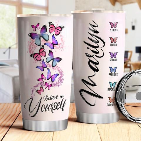 Butterfly Believe In Yourself Personalized Stainless Steel Tumbler, Personalized Tumblers, Tumbler Cups, Custom Tumblers