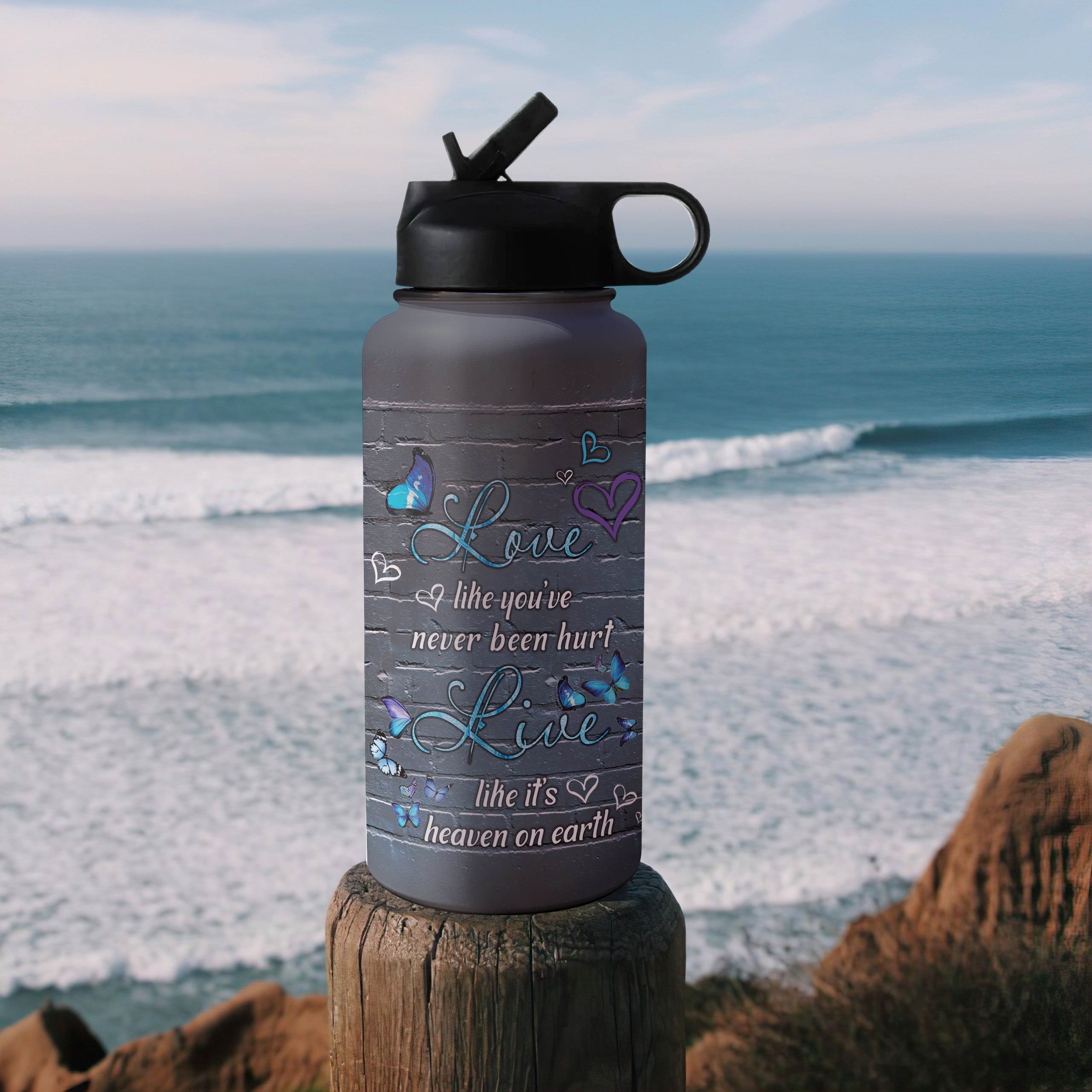 Butterfly Personalized Aarz2004007Z Stainless Steel Bottle With Straw Lid