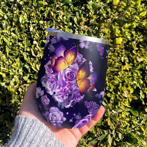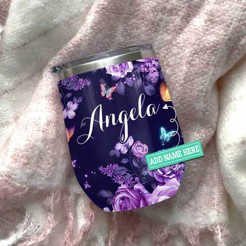 Butterfly Purple Rose Personalized Wine Tumbler, Personalized Tumblers, Tumbler Cups, Custom Tumblers