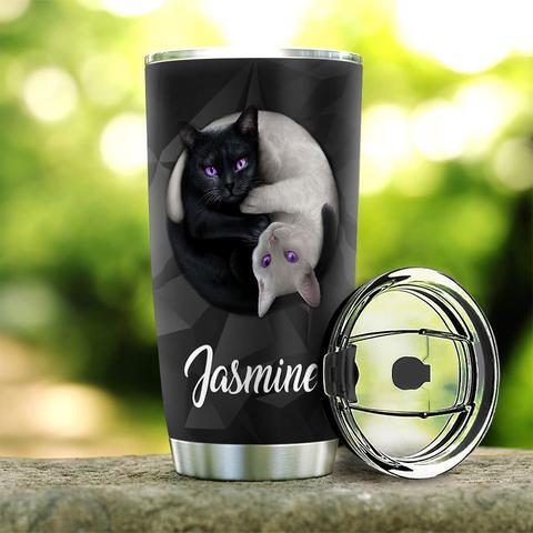 Cat Yin Yang Black White Personaltized Stainless Steel Tumbler, Personalized Tumblers, Tumbler Cups, Custom Tumblers