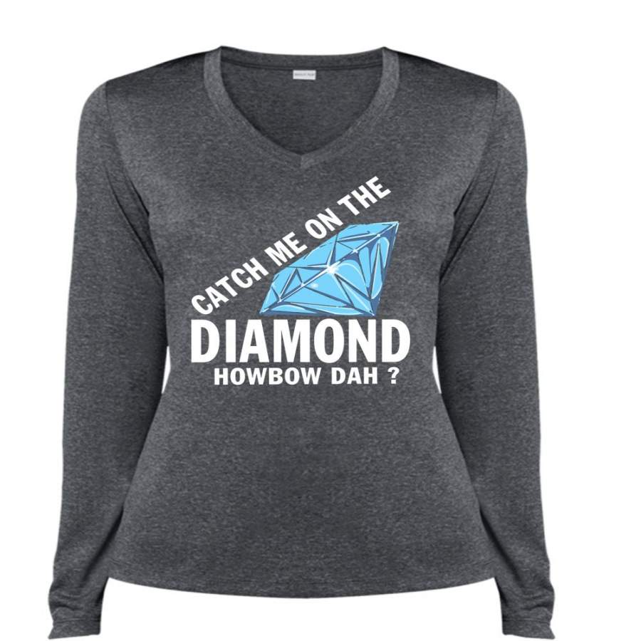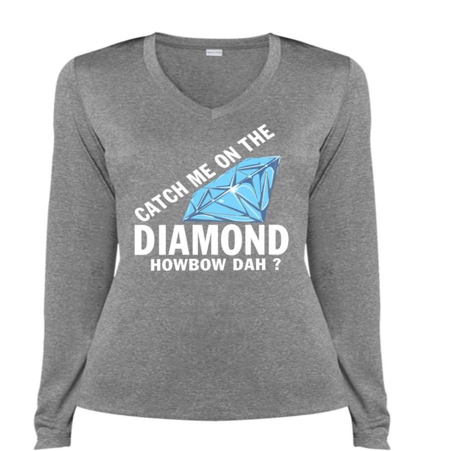 Catch Me On The Diamond Howbow Dah T Shirt, I Love Girlfriend T Shirt, Cool Shirt (Ladies LS Heather V-Neck)