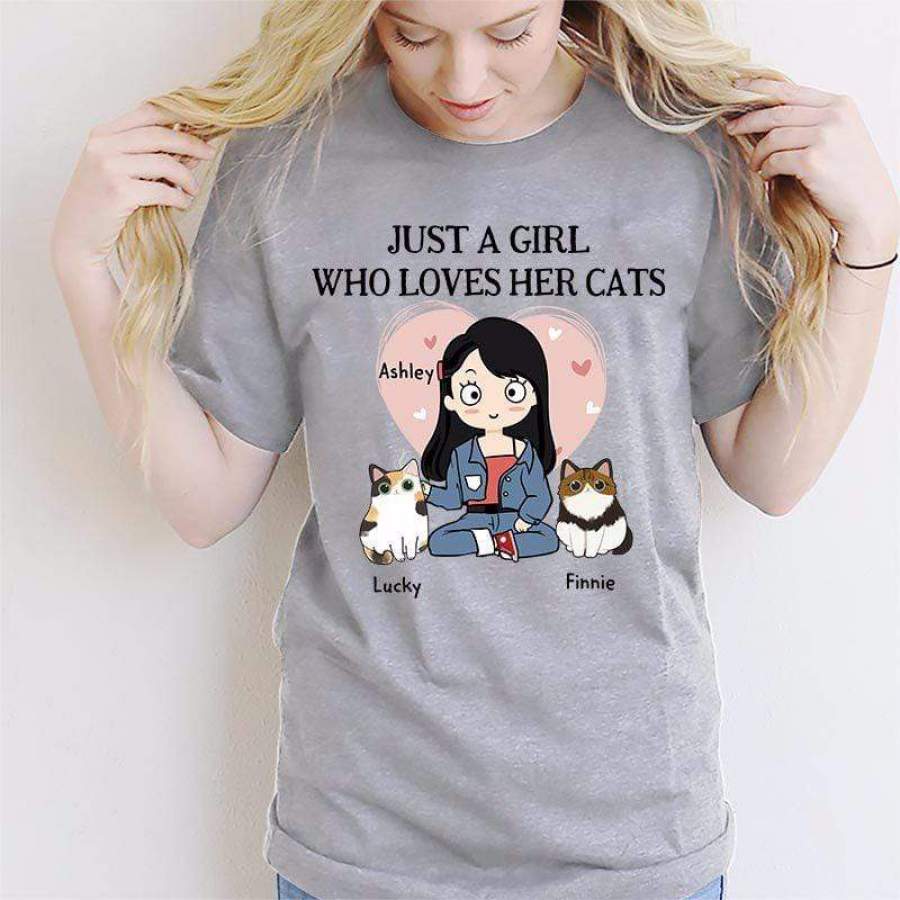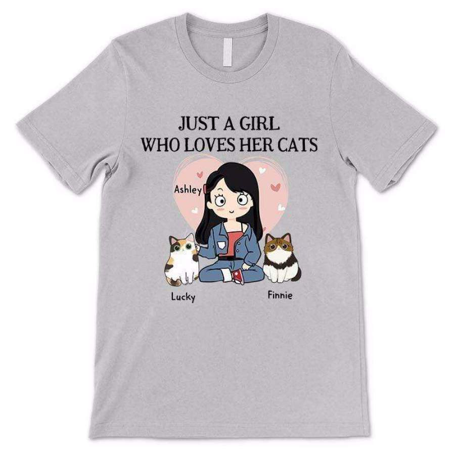 Chibi Girl Loves Her Cats Chubby Cat Personalized Shirt