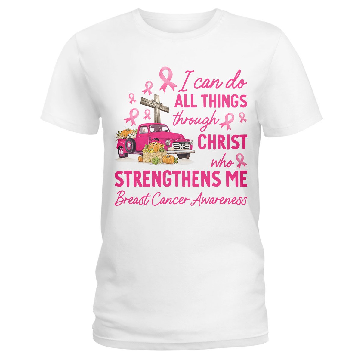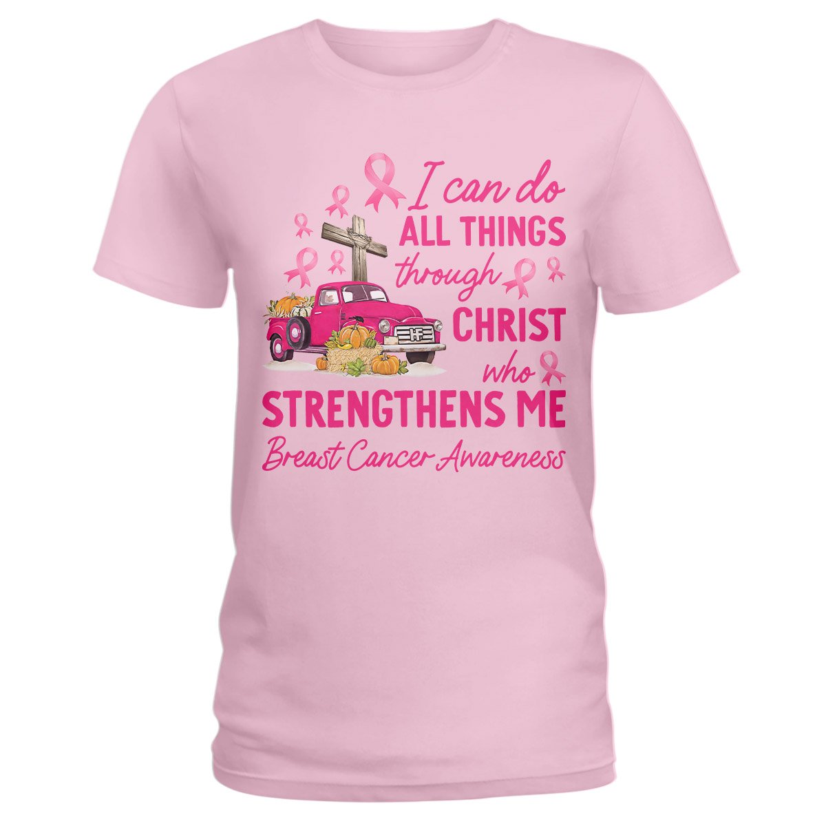 Christian I Can Do All Things Through Jesus Breast Cancer Awareness Ladies T-Shirt
