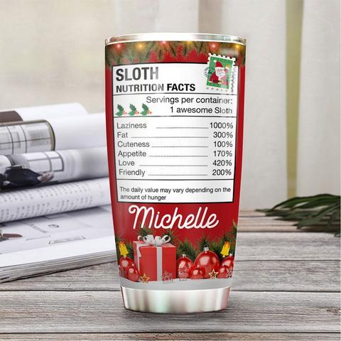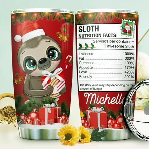 Christmas Sloth Personalized Stainless Steel Tumbler, Personalized Tumblers, Tumbler Cups, Custom Tumblers