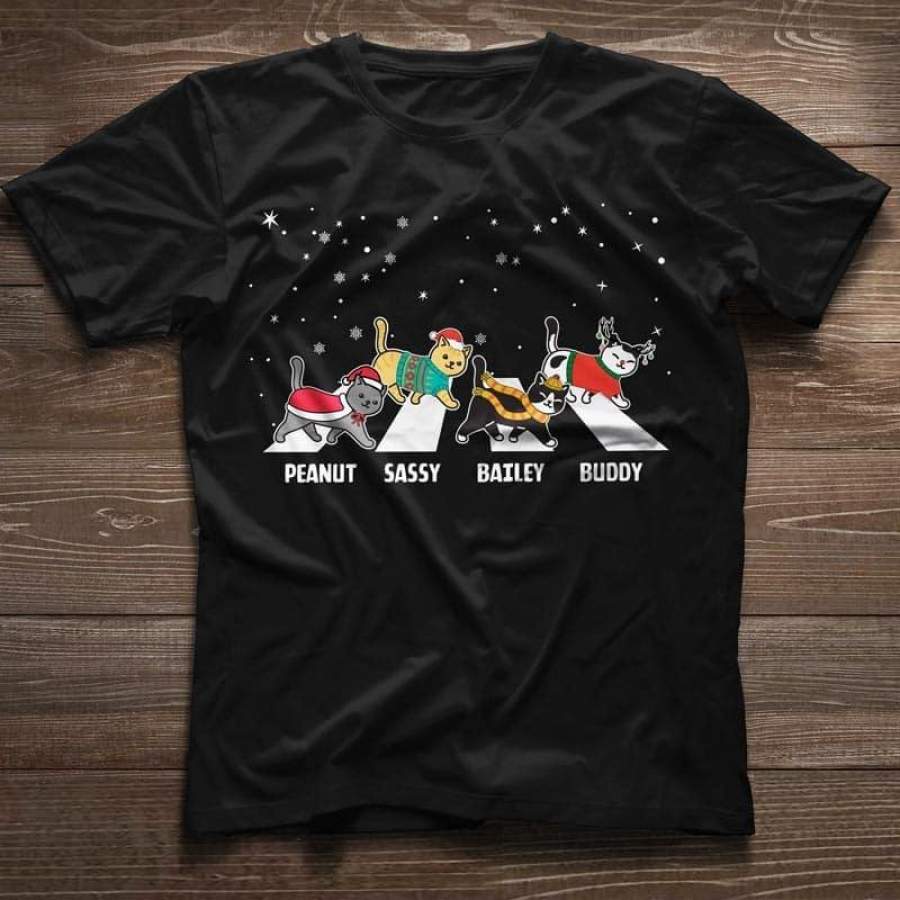 Christmas Walking Cat Crossing Road Personalized Shirt