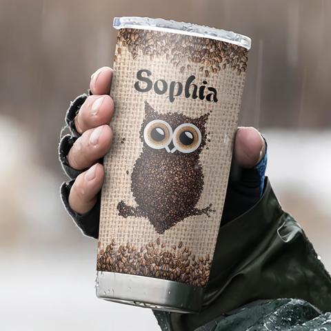 Coffee Owl Personalized Stainless Steel Tumbler, Personalized Tumblers, Tumbler Cups, Custom Tumblers