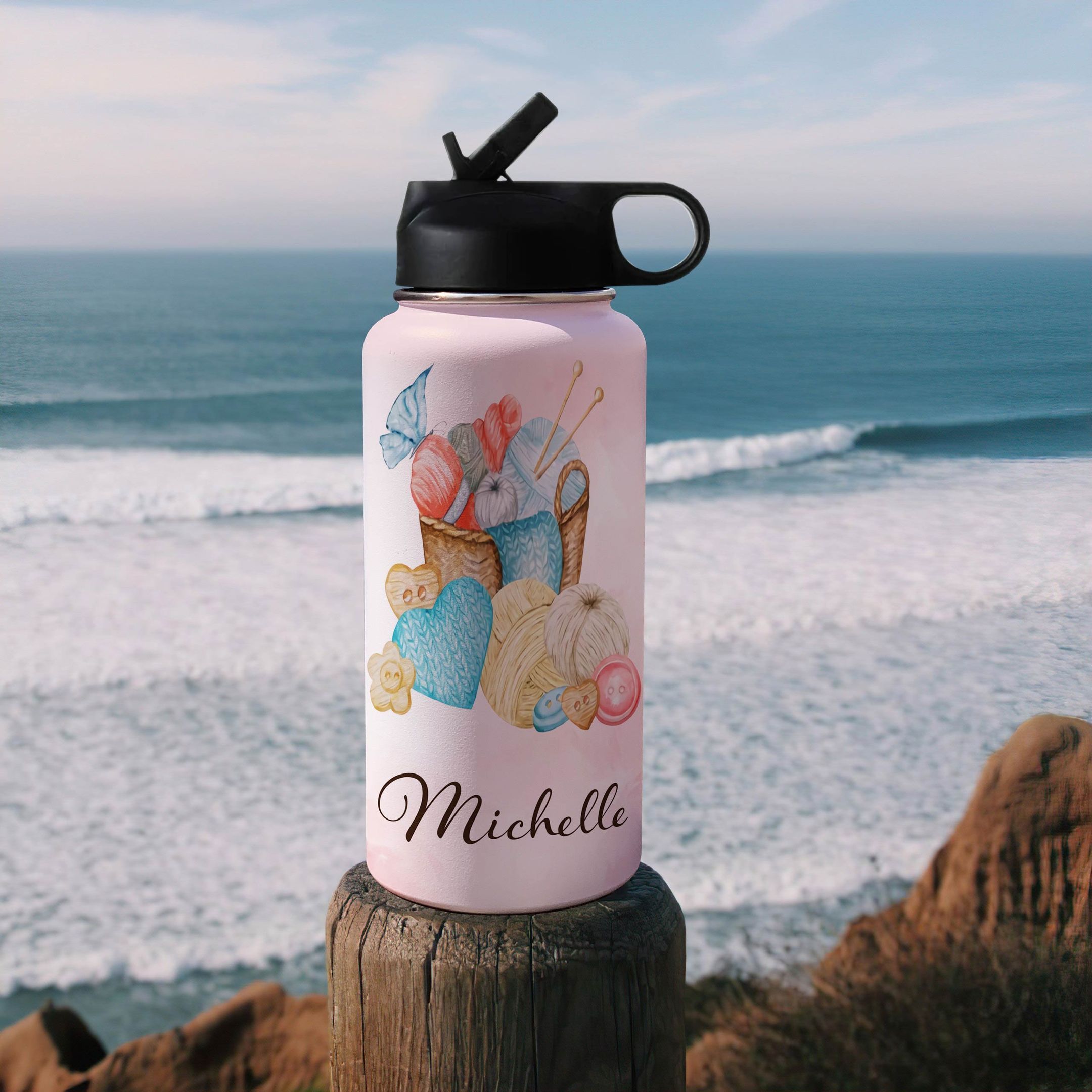 Crochet Personalized Hha1410006 Stainless Steel Bottle With Straw Lid