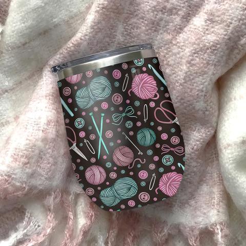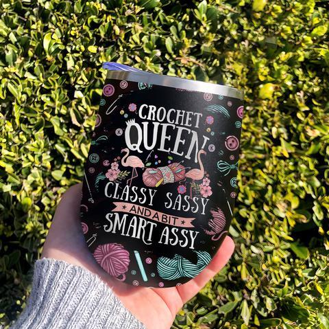 Crochet Queen Yarn Pattern Wine Tumbler, Crochet Lover Gift Wine Tumbler, Personalized Tumblers, Tumbler Cups, Custom Tumblers