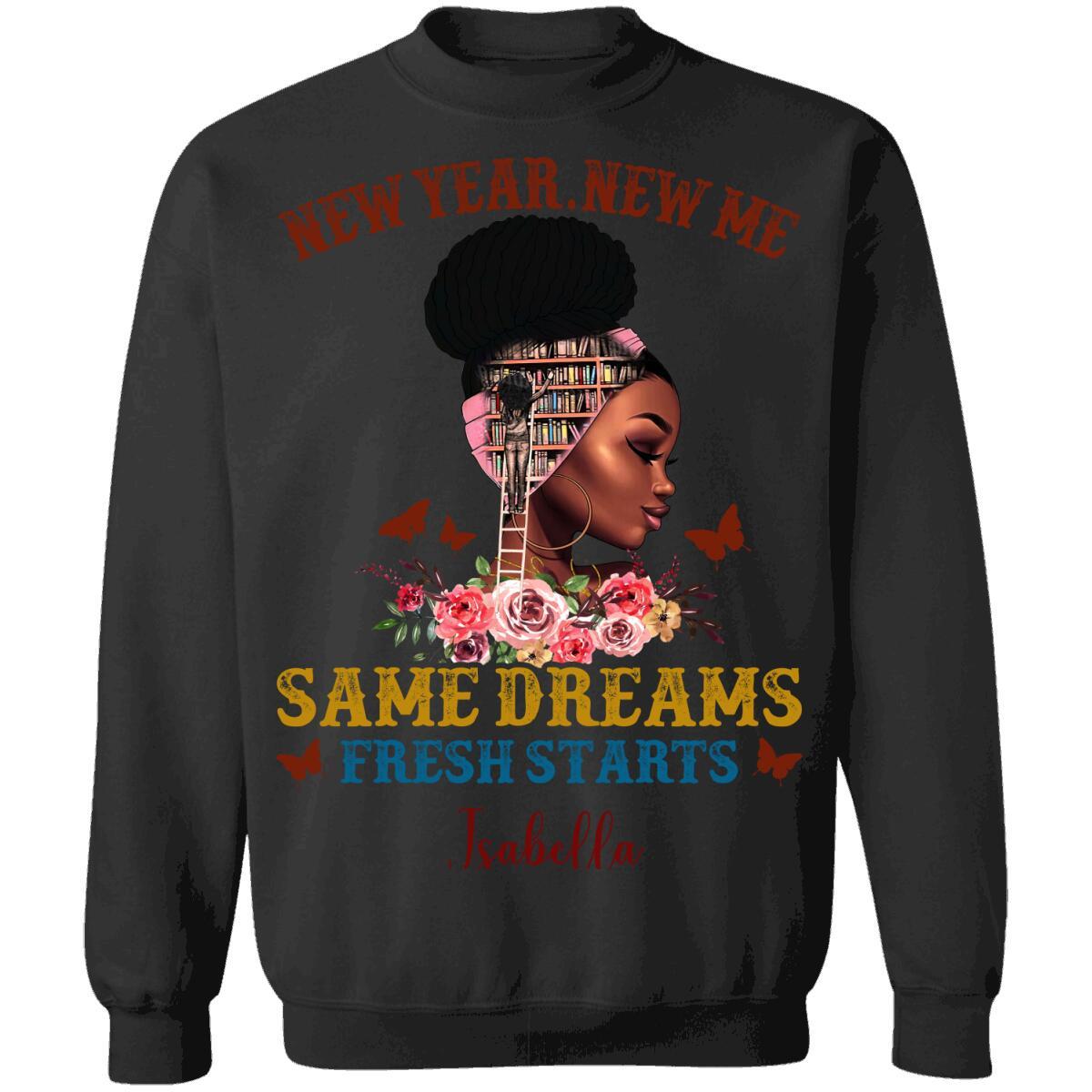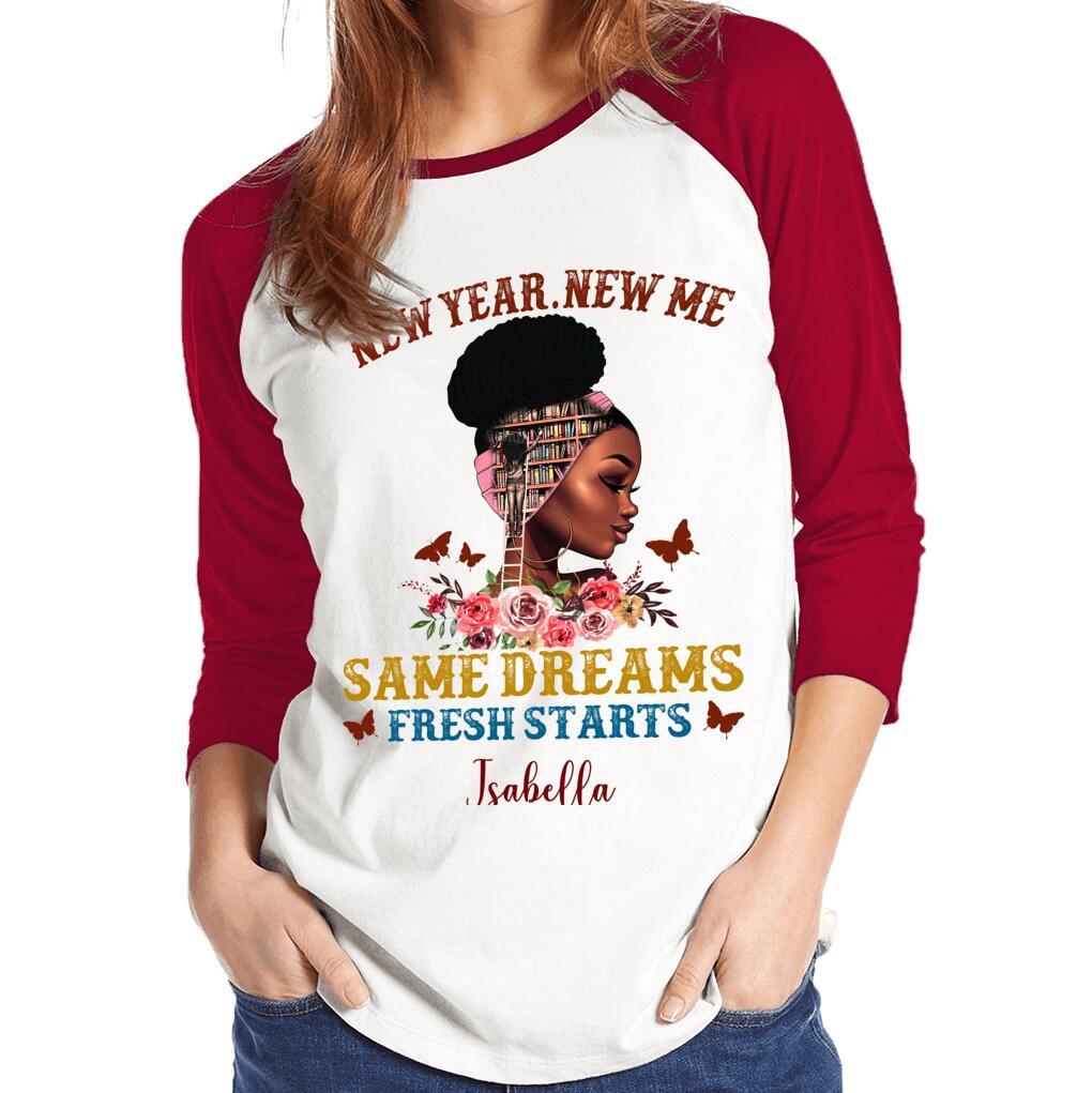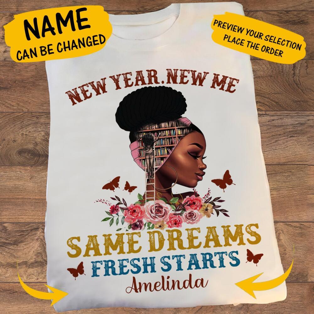 Custom Black Girl New Year New Me Same Dreams Fresh Starts Front Printed T-Shirt