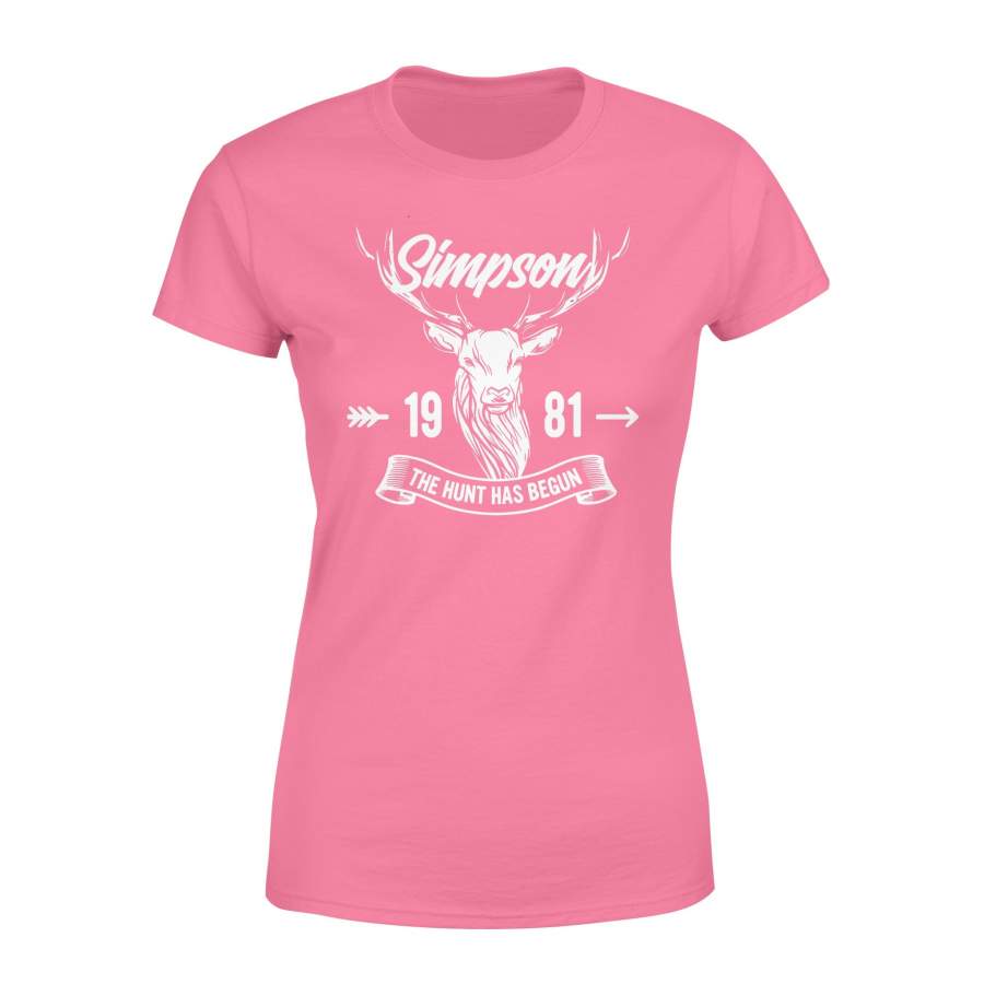 Custom name and year of birth the hunt has begun personalized gift hunting standard Women’s T-shirt