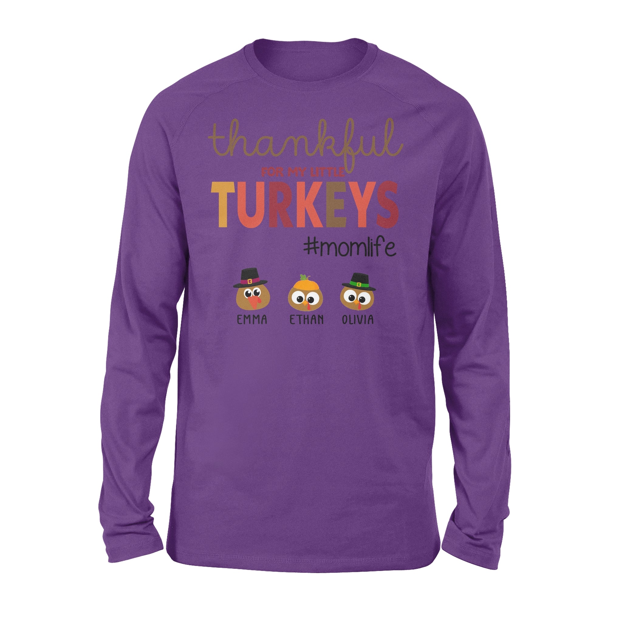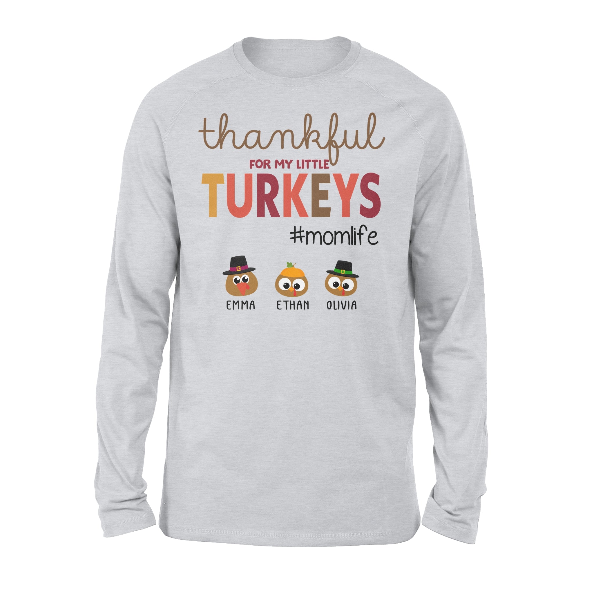 Custom Name Thankful For My Little Turkeys Personalized Gif For Mom – Standard Long Sleeve